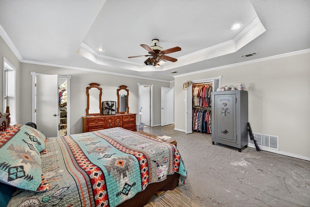 - Patio, Covered/Enclosed Patio, Separated Living Quarters, Front/Back Porch, Fence, Residence(s), Stock Tank(s), Fenced, Cross Fenced, Workshop, Holding Pens, Patio, Shade Trees