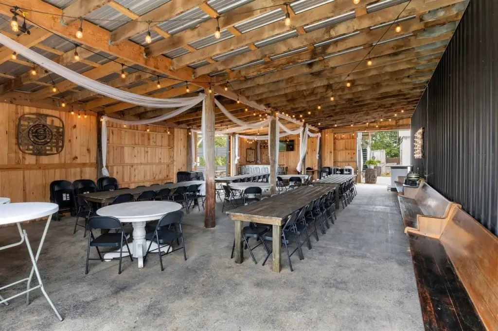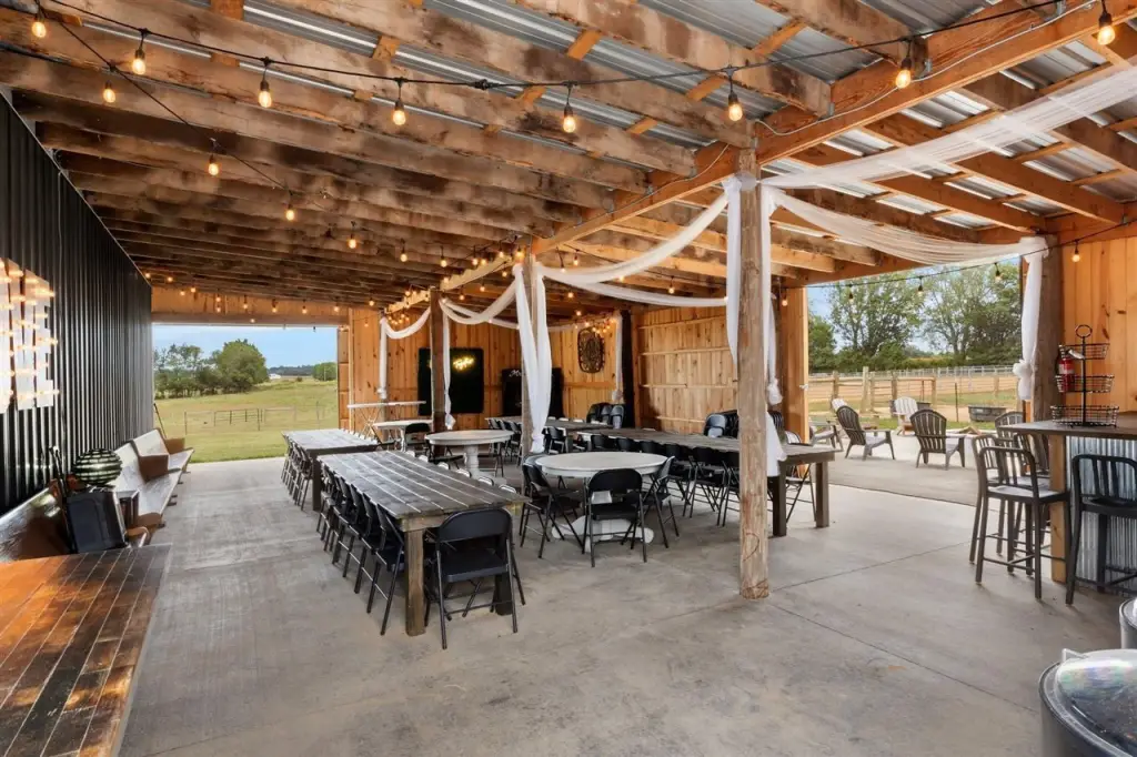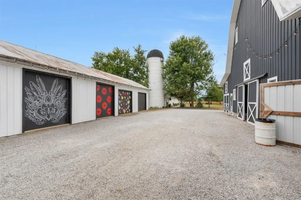 - Aggregate Walks, Barn, Covered Front Porch, Out Building, Silo(s), Workshop, Court Yard, Covered Deck, Covered Patio, Enclosed Patio, Exterior Lights, Garden Area, Gas Grill, Gazebo, Landscaping, Mature Trees, Outdoor Lighting, Patio, Pond(s), Porch, Stables, Storage Building, Storage Shed, Trees, Storm Shelter, Backyard Fence, Fence