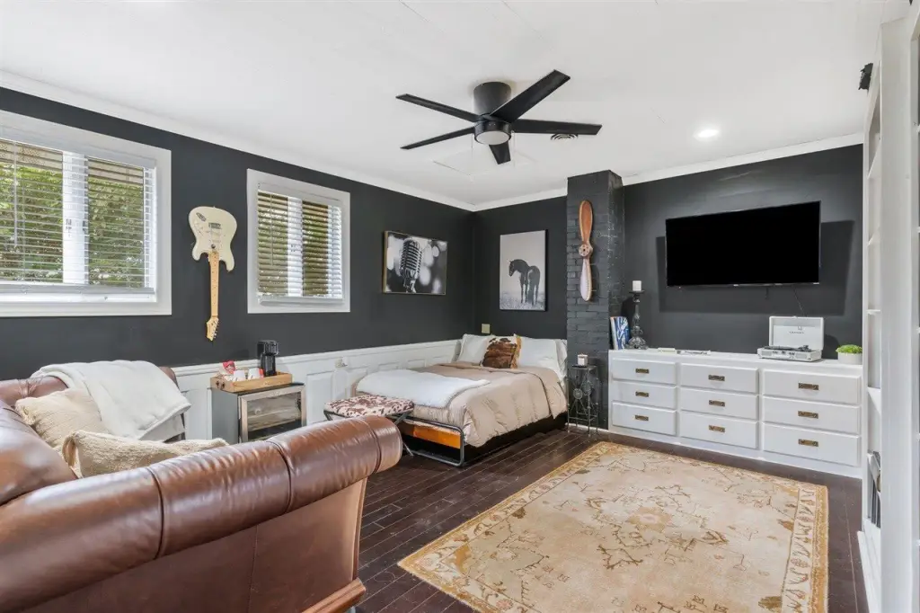 - Attic Access Only, Attic Fan, Attic Storage, Bookshelves, Ceiling Fan(s)