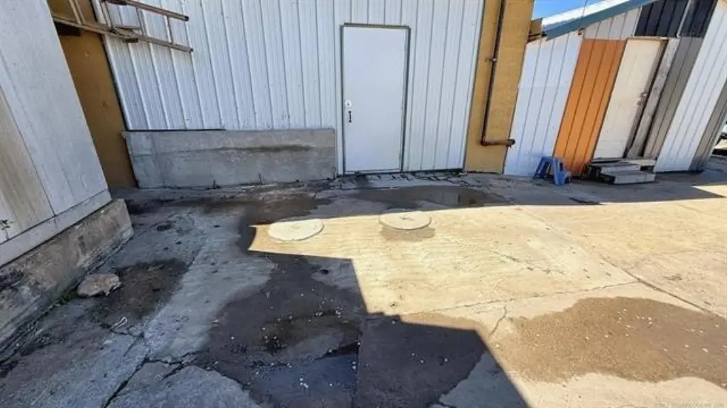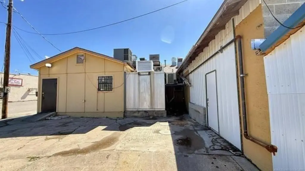 - Dumpster, Pole Sign, Roof Sign, Sidewalk, Storage, Outside Storage