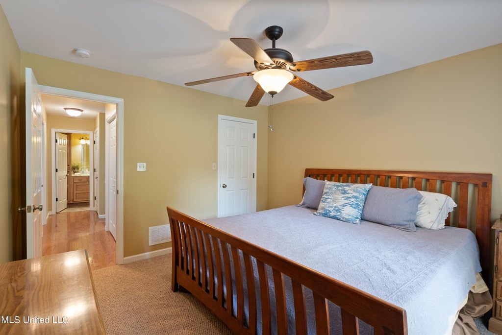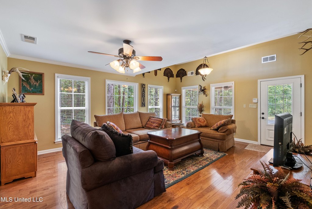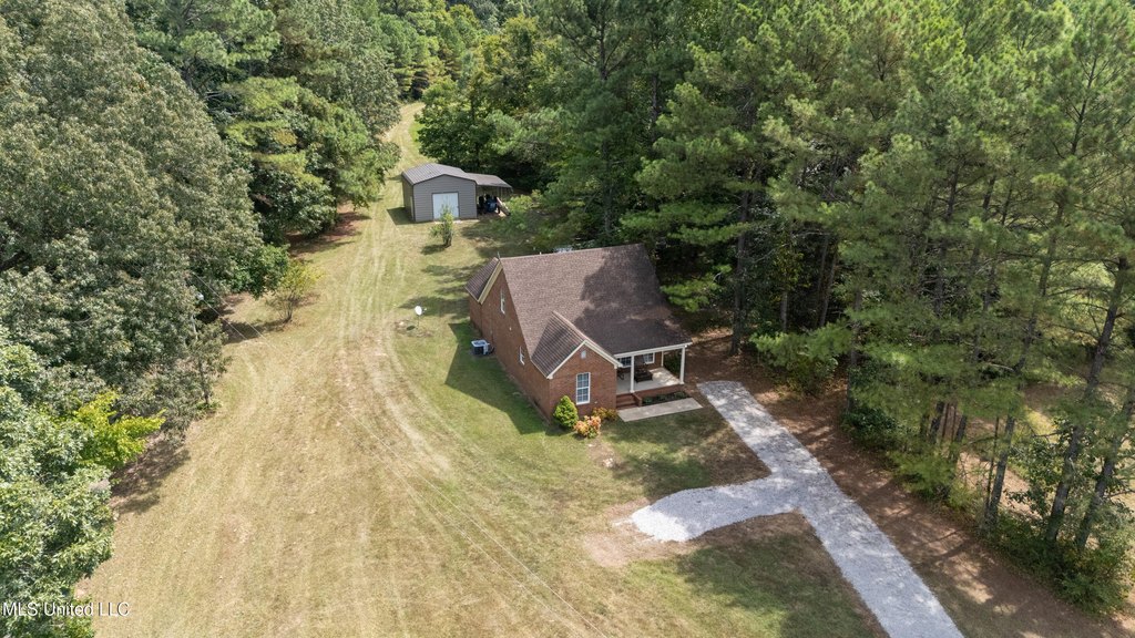 This property, located near Holly Springs, MS, offers a rare opportunity with its multi-purpose land nestled between the Holly Springs National Forest and Wall Doxey State Park. It is approximately 25 minutes from Oxford and Ole Miss. The land features approximately 25 acres of open field pastures among a total of 112.2 acres. The property includes mixed timber and three stocked ponds, along with a food plot. Recreational opportunities include hunting and fishing, with abundant deer, turkey, and small game. The property is equipped with food plots planted with soybeans and chufa, as well as clover deer stands, two box stands, and two ladder stands. The hardwood timber includes various oaks, dogwoods, pine, and persimmon. Cleared driving trails provide navigation throughout the entire property, accessible via four entry gates. A 750-foot winding driveway leads to a cottage home. The home includes a vaulted great room with wood floors and a screened porch. The kitchen features a peninsula island, breakfast bar, built-in appliances, custom cabinets, and an open dining area. Bedroom 1 includes a ceiling fan and walk-in hunting closet. Bathroom 1 has an over-sized vanity with drawers, a linen cabinet, and a walk-in shower. Upstairs, a large loft bedroom offers space for bunk beds, and a bathroom with a large vanity and tub/shower combo. The screened porch includes a ceiling fan and storage closet, extending to a patio and a 20 x 20 shop with a workstation and lean-to boat storage. Additional features include crown molding, smooth ceilings, a security system, exterior security lighting, cameras, wood-trimmed windows with blinds, a laundry closet, Carrier HVAC, a Class 1 Wastewater Treatment Plant, a Sentricon Termite Control System, fruit trees, and a small garden.