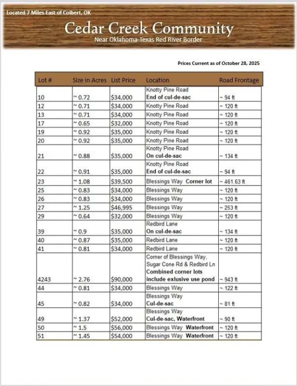 Land in Cedar Creek Community