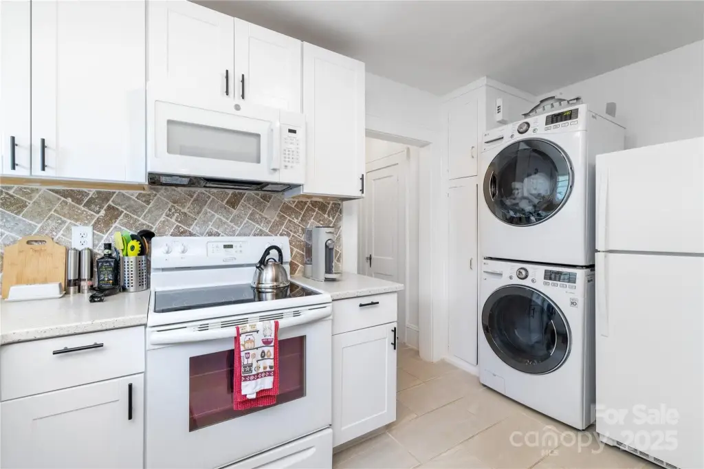 - Dishwasher, Electric Range, Microwave, Refrigerator, Washer/Dryer