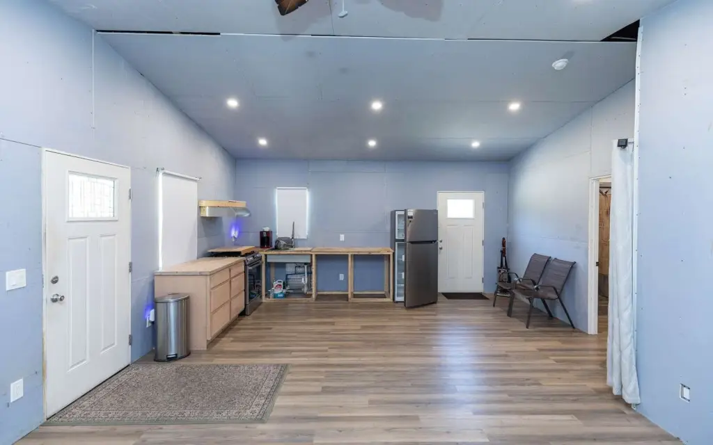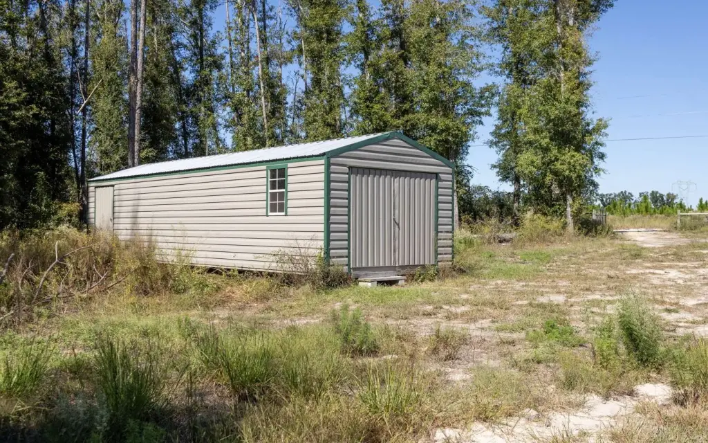 - Cleared, Fenced, Workshop Metal Frame Metal Sided, Prefabricated Shed, With Slab