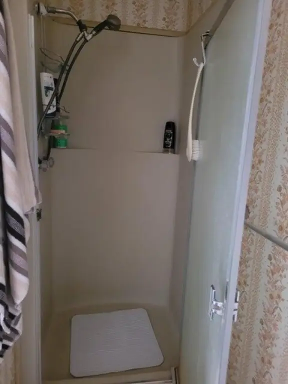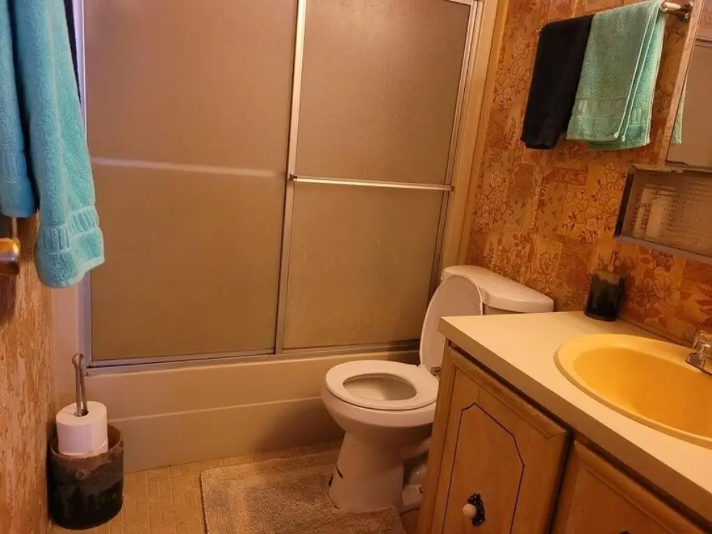 - Breakfast Bar, Built-in Features, Ceiling Fan(s), Fiberglass Stall Shower, Kitchen Island, Linen Closet, Open Floorplan, Pantry, Primary Downstairs, Shower/Tub Combo, Vaulted Ceiling(s), Walk-In Closet(s)