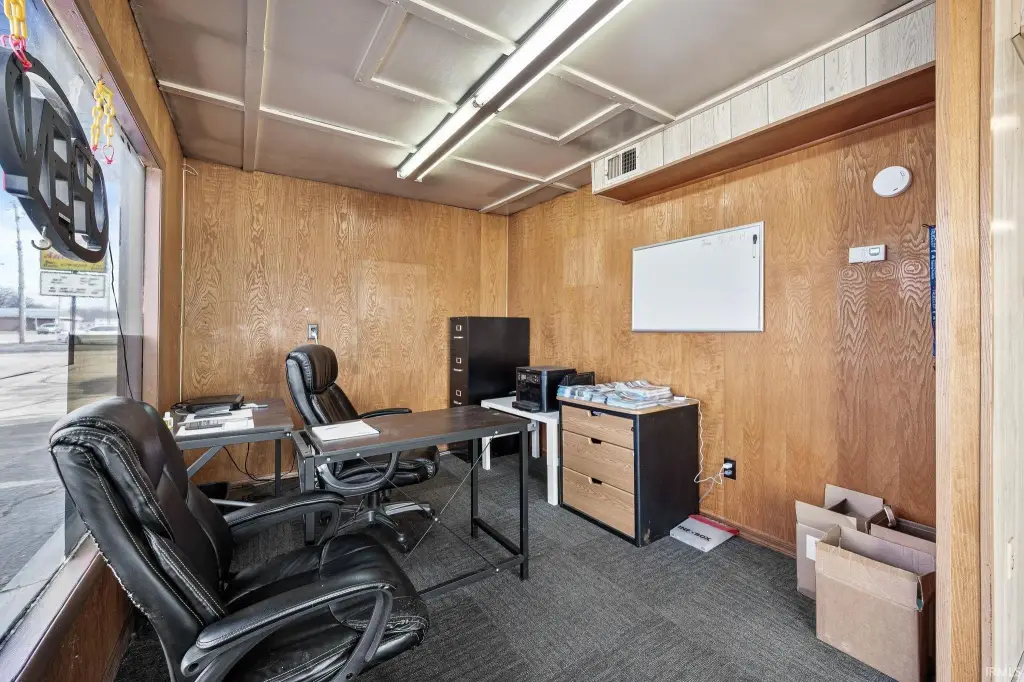 - Drywall, Unfinished, Handicap Access, Overhead Door 1, Overhead Door 2, Delivery Door, Display Room, Display Window(s), Office Space, Reception Area