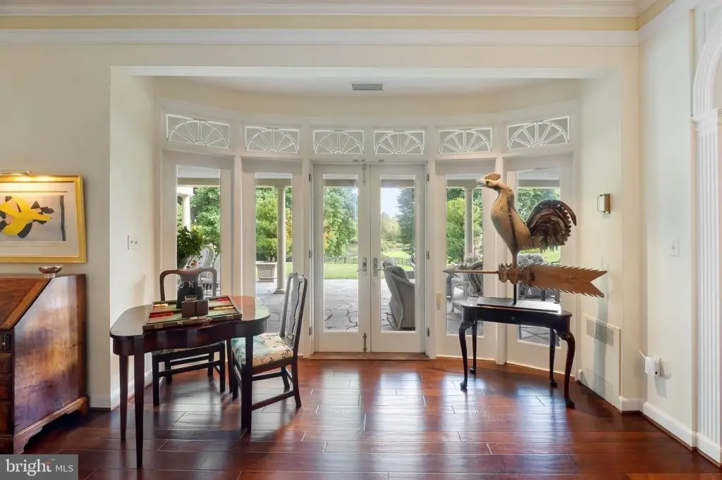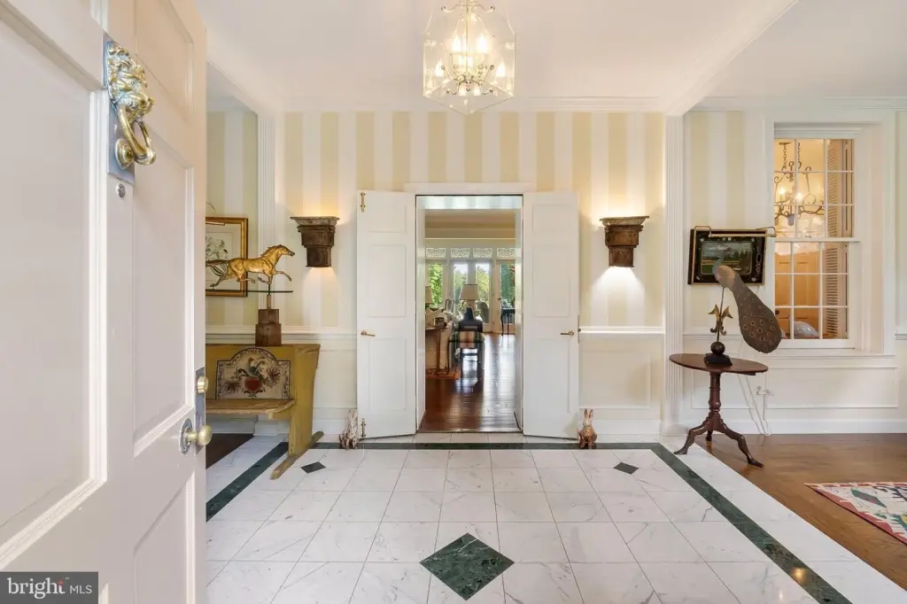 Cloverwood is a 78-acre estate featuring frontage on Zulla and Burrland Roads. The land includes professionally managed mature trees, a 4-acre lake, and board-fenced paddocks and fields. The property features a manor house with a 20’ x 40’ pool, a guest house, two tenant houses, and two stables with a total of 26 stalls. The property is located within the Orange County Hunt territory and is protected by an Open Space Easement with the Virginia Outdoors Foundation. The one-level stone manor house, built in 1946 and renovated in the 1980s and 2015, has a Buckingham Slate roof and a large, covered stone terrace. The foyer opens into a living room with moldings, deep-set windows, a wood-burning fireplace, and a bowed wall of windows and French doors to the terrace. The living room connects to a wet bar, library, two bedroom suites, dining room, and gourmet kitchen. The kitchen features granite countertops, cabinets, Wolf gas cooktop, Miele double ovens and warming oven, and Subzero refrigerator and freezer. There is also a guest suite, laundry, butler’s pantry/mudroom, and a 2-car garage. The primary suite includes a wood-burning fireplace, built-in cabinetry, closets, and two separate baths. The library has heart pine cabinetry, a bay window with window seat, and a wood-burning fireplace. The guest house has one bedroom and one bath. One tenant house has three bedrooms, two baths, a living/dining room, a kitchen, and a one-car garage. The stable has 14 stalls, two wash stalls, a tack room, an office, and two equipment bays. There are fenced fields and an outdoor riding arena. The second tenant house has two bedrooms and one bath. The second stable has 12 stalls. Located minutes from Middleburg, the property allows access to Dulles International Airport and Washington, D.C.