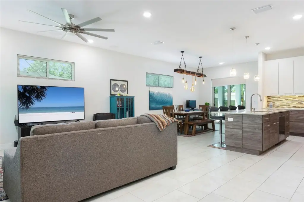 - Ceiling Fans(s), Eat-in Kitchen, High Ceilings, Kitchen/Family Room Combo, Living Room/Dining Room Combo, Open Floorplan, Primary Bedroom Main Floor, Solid Wood Cabinets, Walk-in Closet(s), Window Treatments