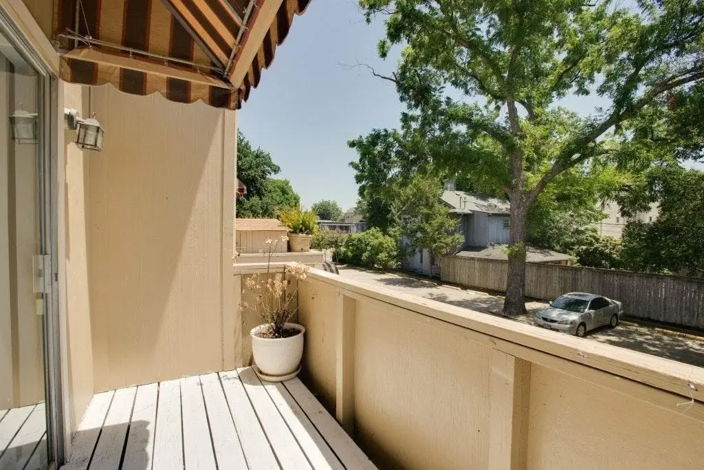 - Awning(s), Balcony, Courtyard, Rain Gutters, Fence
