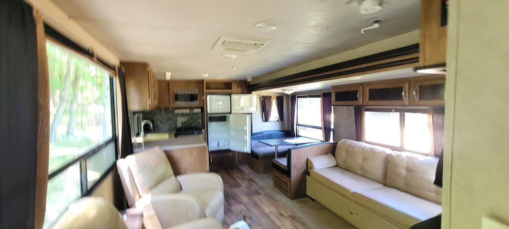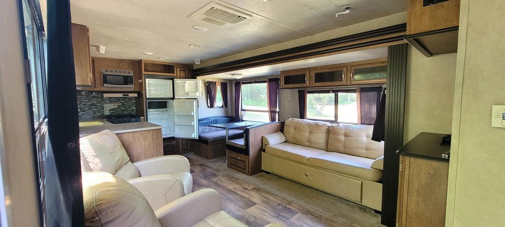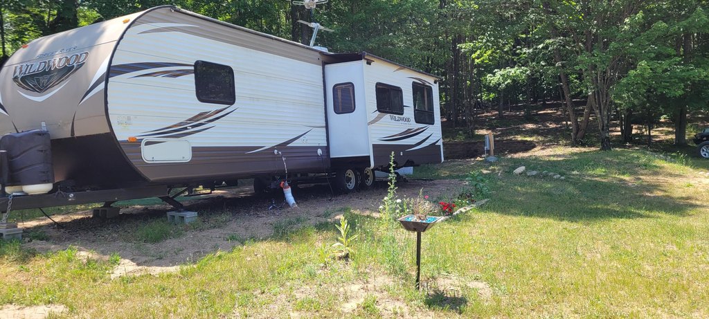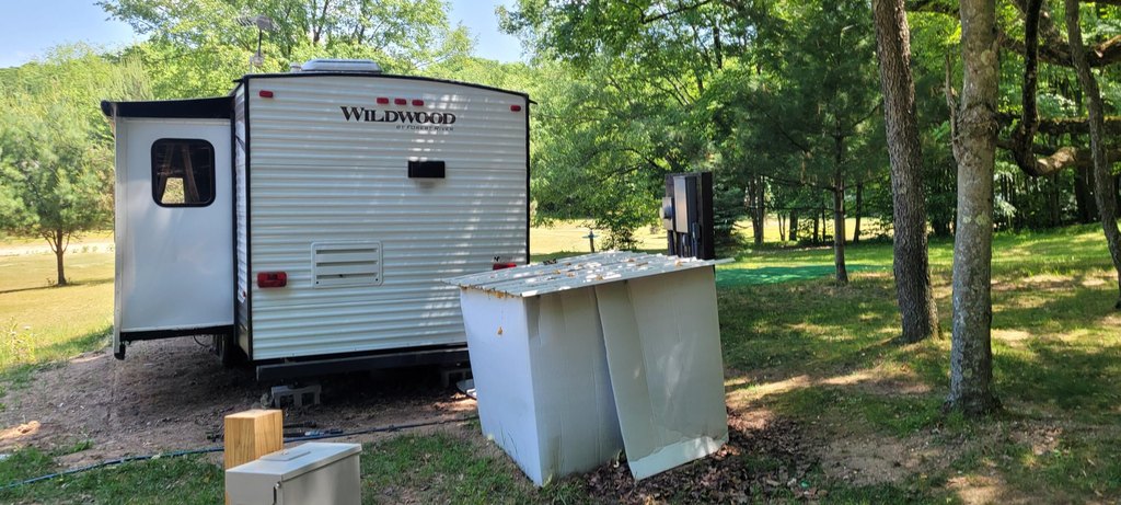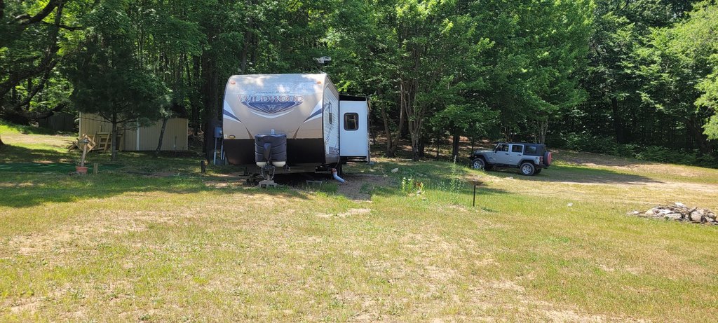 Land with Camper Near Forest