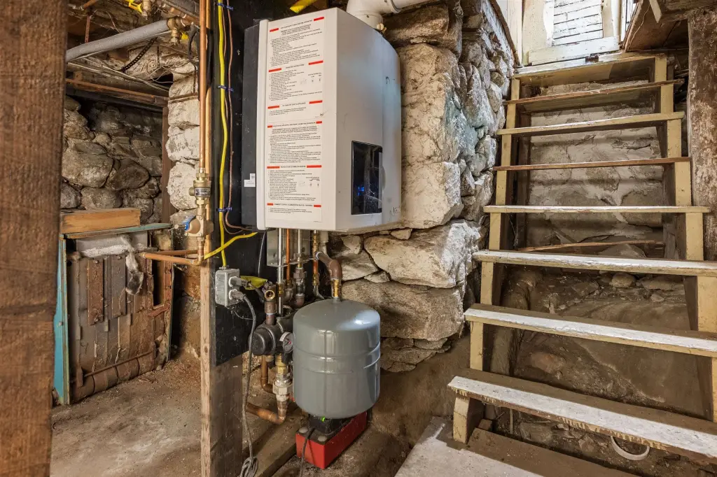 - Baseboard, Hot Water (Heating), Natural Gas, Wood (Heating), Wood Stove