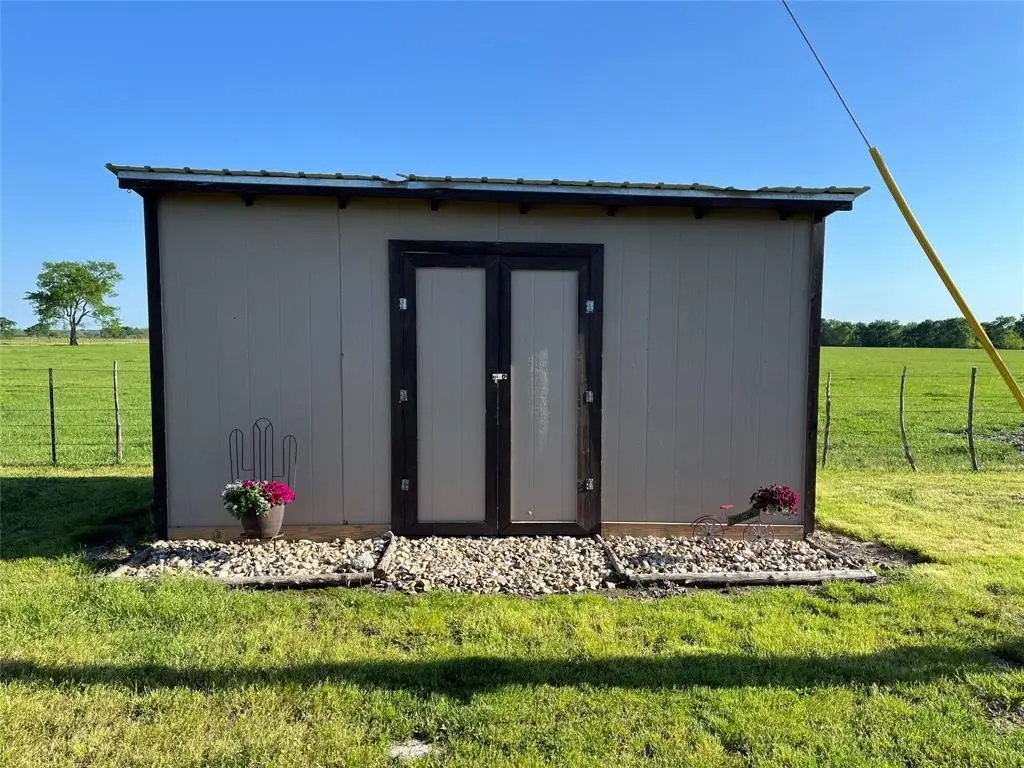 - Covered Deck, Fire Pit, Rain Gutters, Lighting, Rv Hookup, Rv/Boat Parking, Stable/Barn, Storage, Uncovered Courtyard, Fence