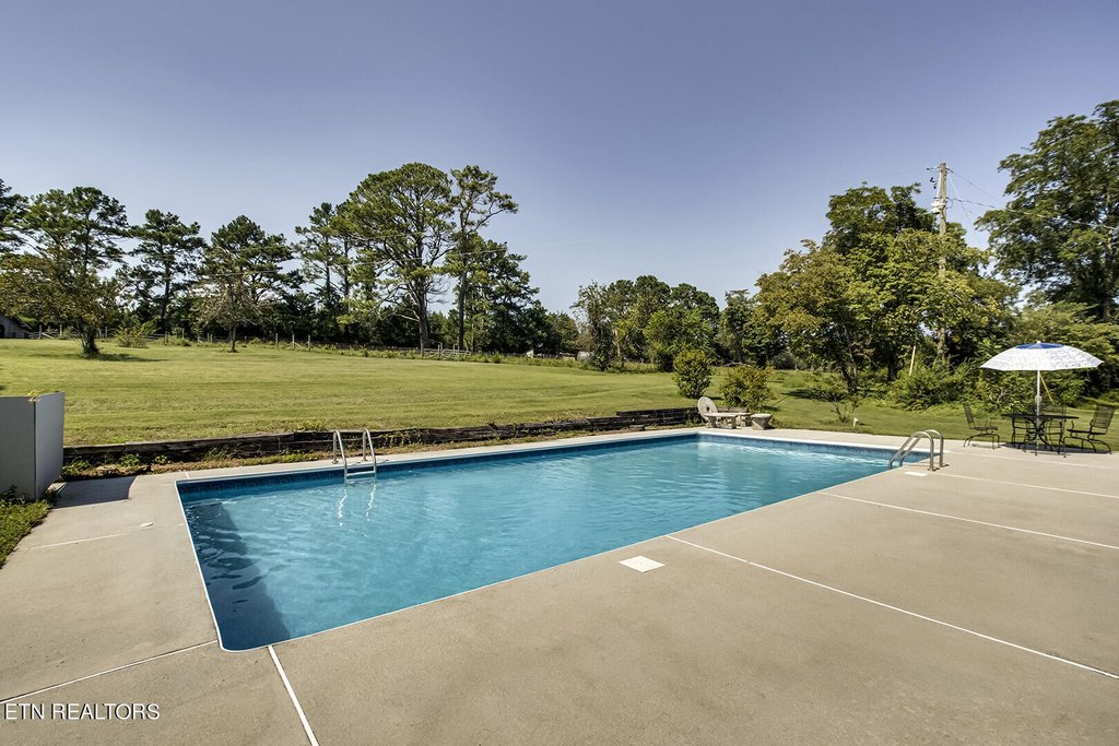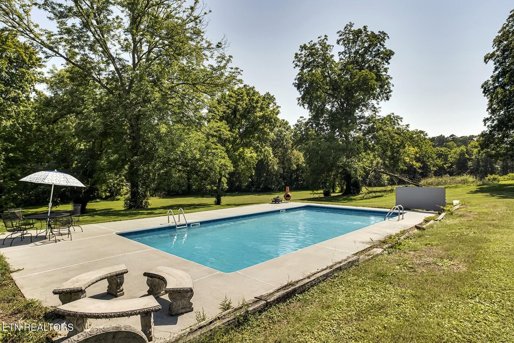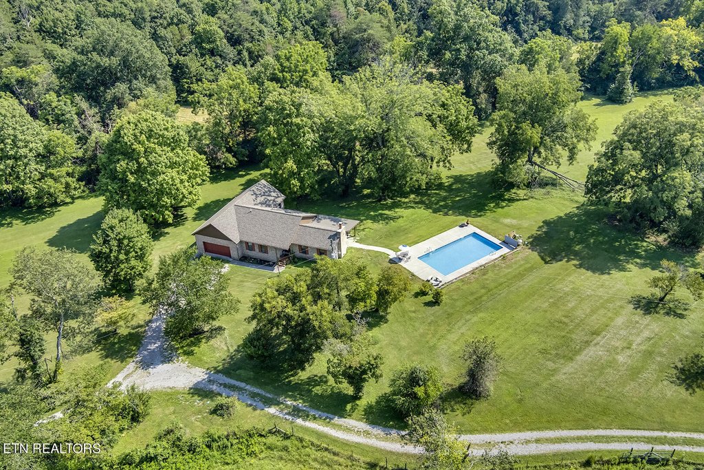 This 34.28-acre property in Corryton, Knox County, Tennessee, features a brick home, pool, and barn. The land includes cleared level pasture and gently rolling wooded terrain, along with a creek. The grounds are adorned with blueberry bushes, pecan, walnut, peach, pear, and apple trees. The property is fenced and cross-fenced for livestock and includes a covered rabbitry and chicken coop. A six-stall barn offers a tack room, electric, and a concrete pad. An additional gravel drive off Shipe Rd leads to the rear of the property, where a second well and septic hook-up are ready. The basement ranch home offers over 2300 square feet of finished living space, including two main-level ensuites and an upper ensuite or bonus room. The full unfinished basement adds storage, a third garage bay, workshop space, and potential for future expansion. The property includes a 40,000-gallon in-ground pool and a private well with a UV purification system, plus public sewer. A new roof, gutters, and soffit/gable were installed in 2021, and the HVAC/heat pump is approximately 7 years old. The interior is freshly painted, as are the exterior doors and shutters. Zoned for 2.5 units per acre, the property features approximately 1053 feet of county road frontage and is an attractive prospect for a subdivision. Utilities are nearby, with water and electric available at the road, a sewer line running the length of the property, and favorable soil tests for potential septic. The property is located just off Washington Pike, offering easy access to restaurants, shops, and hospitals, and is an 18-minute drive to downtown Knoxville. Minimal restrictions, with no mobile homes or farm swine, provide freedom to shape your vision. The property benefits from Greenbelt status.