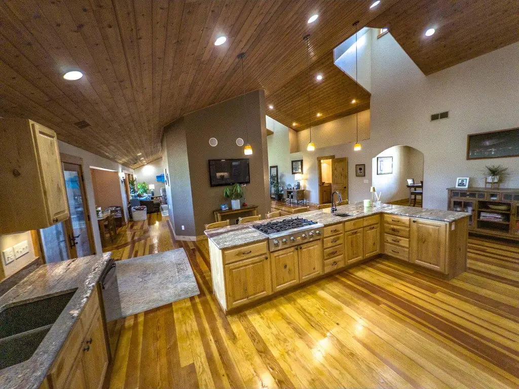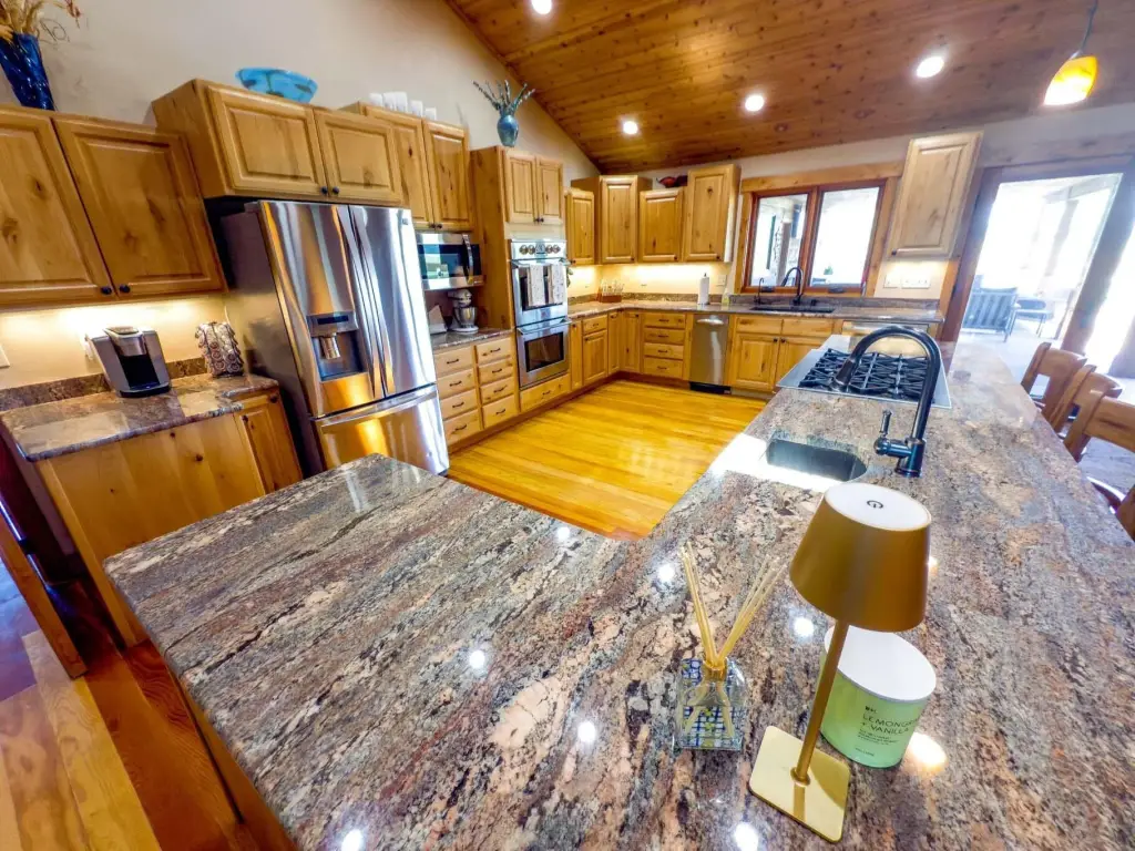 - Ceiling Fan(s), Central Vacuum, Double Vanity, Dual Flush Toilet(s), Fiberglass Stall Shower, Granite Counters, High Speed Internet, Kitchen Island, Linen Closet, Open Floorplan, Pantry, Primary Downstairs, Smart Light(s), Soaking Tub, Spa/Hot Tub, Tile Shower, Vaulted Ceiling(s), Walk-In Closet(s), Wet Bar, Wired for Data, Wired for Sound
