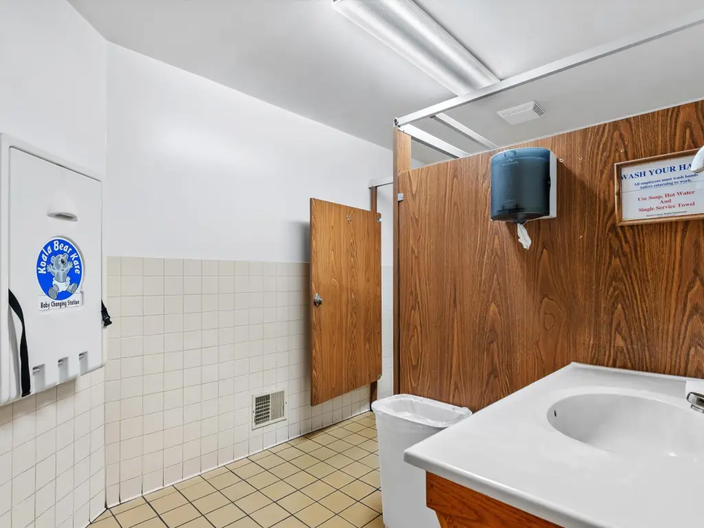 - Carpeting, Compressor, Fixtures, Furniture, Handicap Access, Inside Storage, Office(s), Rest Rooms