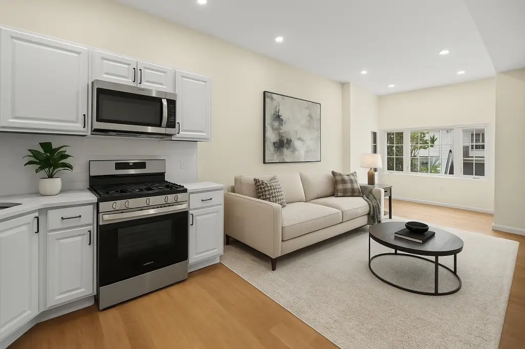 - Microwave, dishwasher, refrigerator, washer and dryer, oven /range