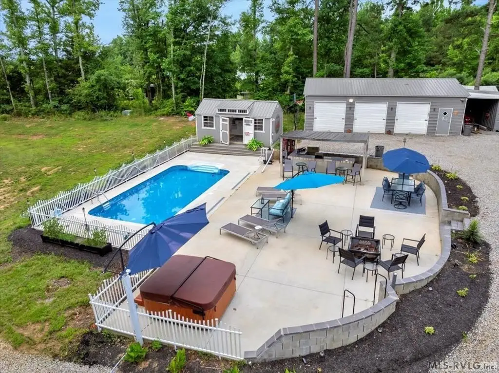 - Fence, Gravel Drive, Storage Building, In-ground Pool, Paved Road, Outdoor Kitchen