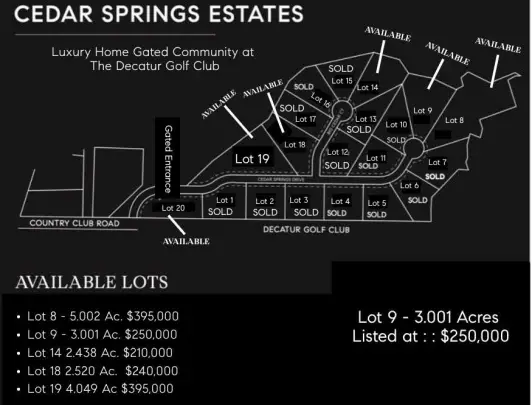 - TBD lot 9 cedar springs