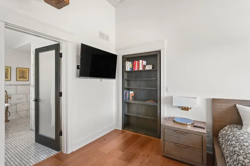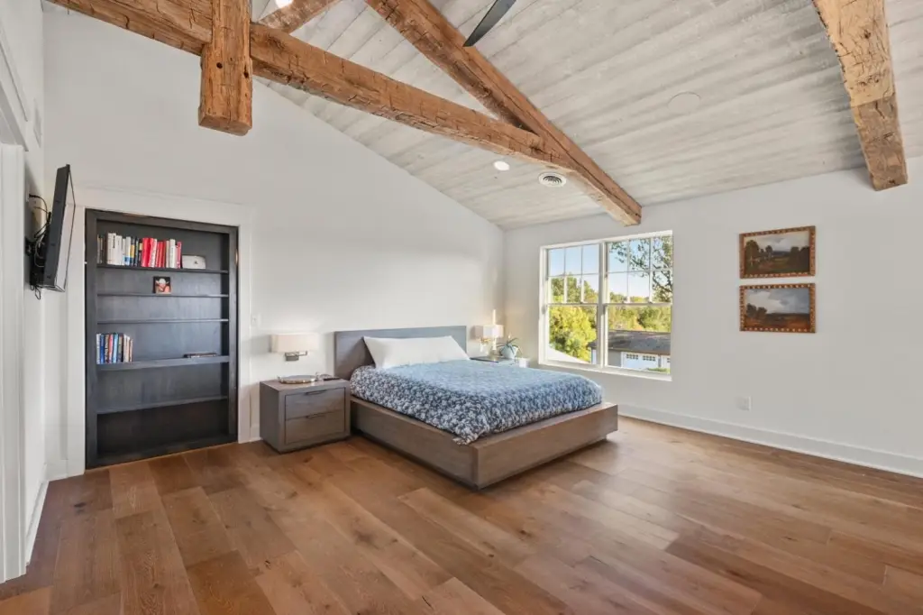 - 9ft + Ceiling, Beam Ceiling, Built-ins, Cathedral Ceiling, French Doors, Multi Panel Doors, Walk-in Closet(s)
