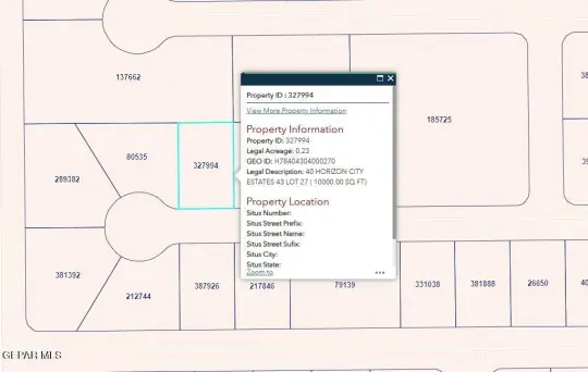 Property Features for PN-327994 40 Horizon City Estates Lot 27