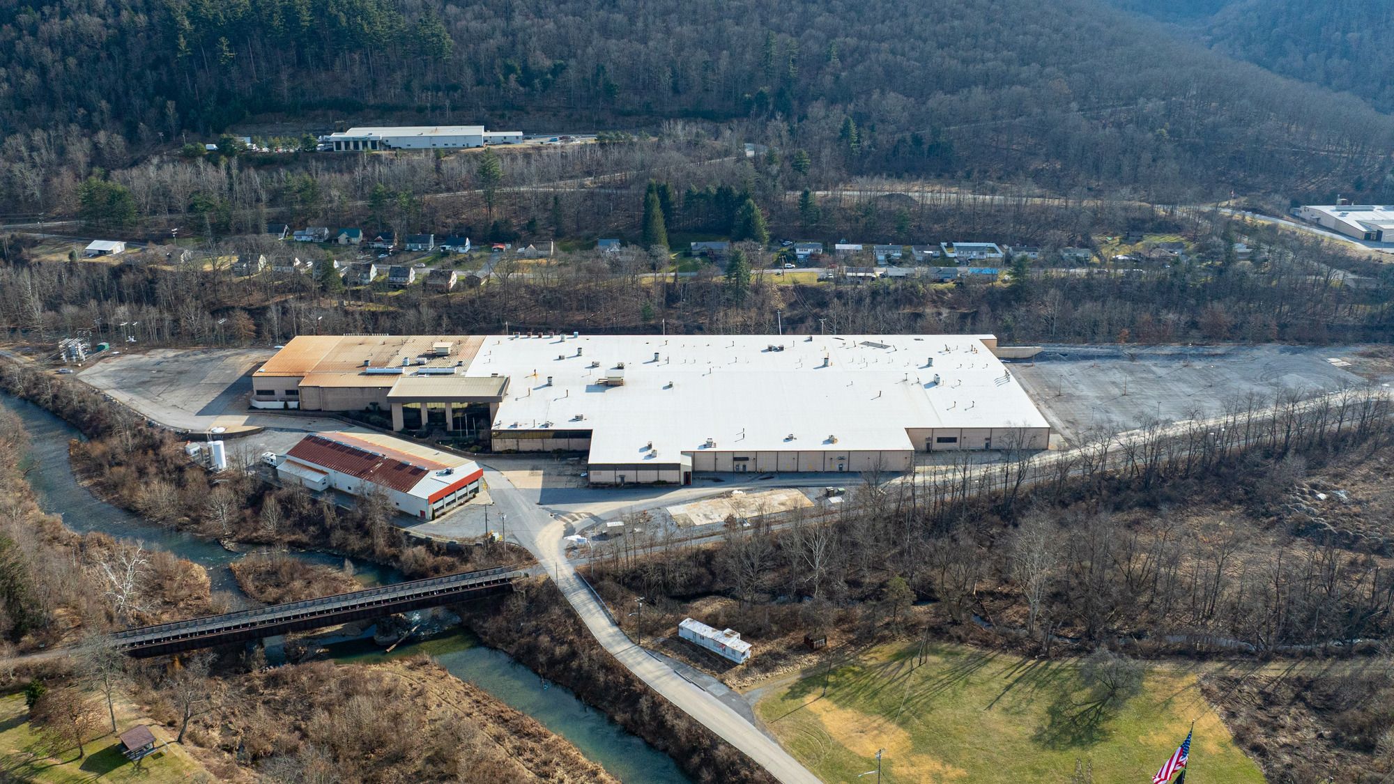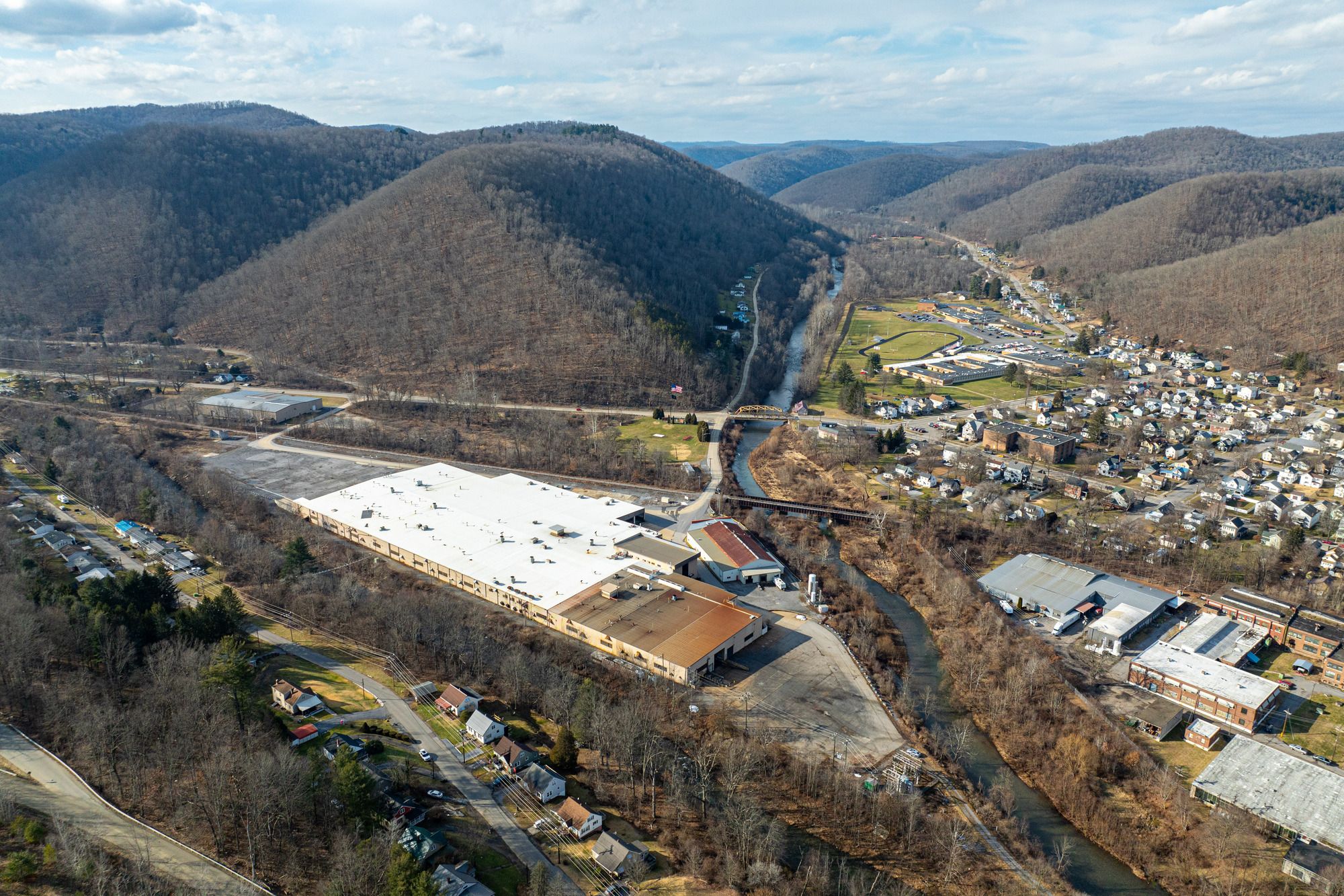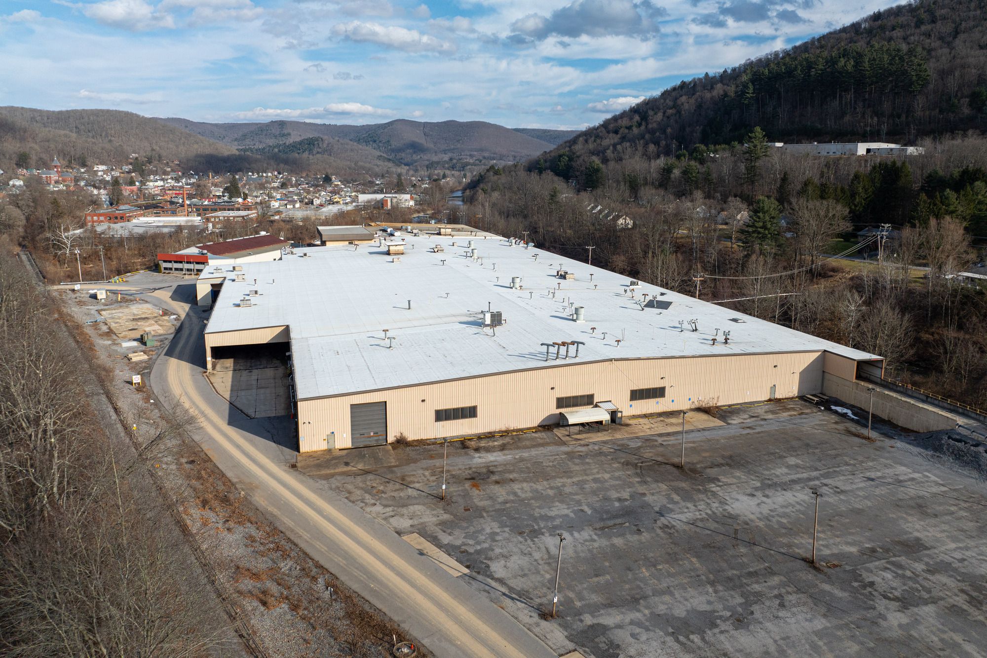 This industrial manufacturing warehouse and office building offers 244,997 square feet of space. Classified as a Class B building, it is situated on a 13.10-acre parcel. Constructed in 1997, the building features a structural steel warehouse and a masonry office section, topped with a flat rubber roof. The warehouse has a conventional clear height of 29 feet 5 inches, while the main floor forging area offers 27 feet of clearance, and the mezzanine provides 10 feet 6 inches. Column spacing is configured at 50 feet by 30 feet. The property includes seven loading docks and four drive-in doors, along with two 3-ton cranes and one 1.5-ton crane. Power is supplied via a substation metered at 46kV with five transformers. Lighting is provided by T-4 fixtures. The office area spans three stories, encompassing 27,000 square feet and includes an elevator. The offices are fully conditioned, as is a portion of the warehouse. Public water and sewer services are available. Restrooms are located throughout the warehouse and on each floor of the office building. Additional improvements include exterior water cooling towers. The building can be easily subdivided in half to accommodate two tenants. Located in Cameron County, PA, which has received a Bioeconomy Development Opportunity (BDO) Zone 'A' rating in 2025.