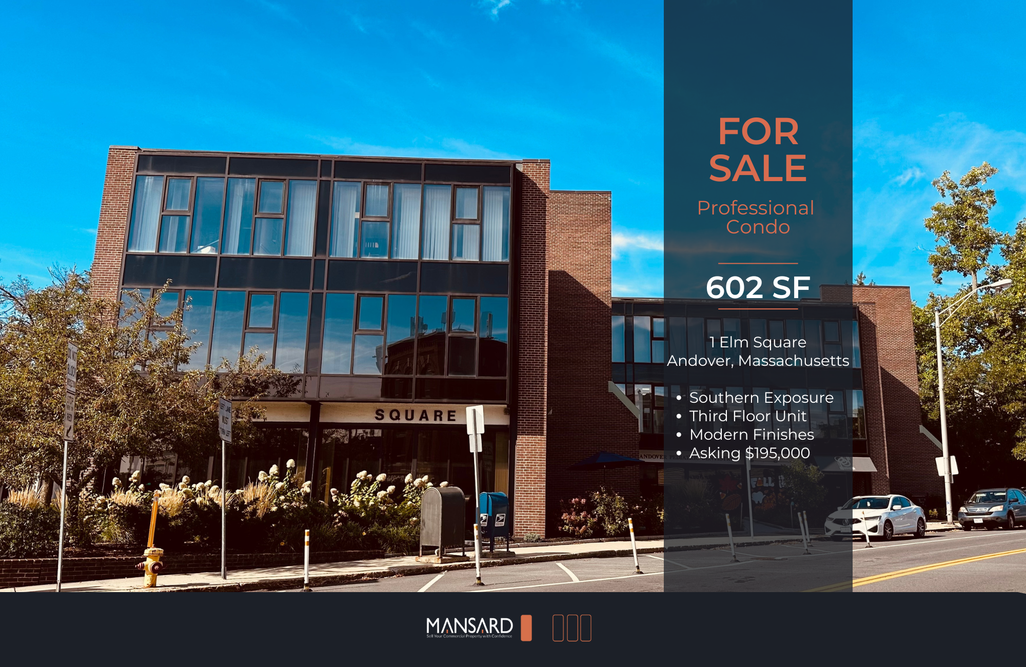 602 SF office condo in downtown Andover, Massachusetts.
