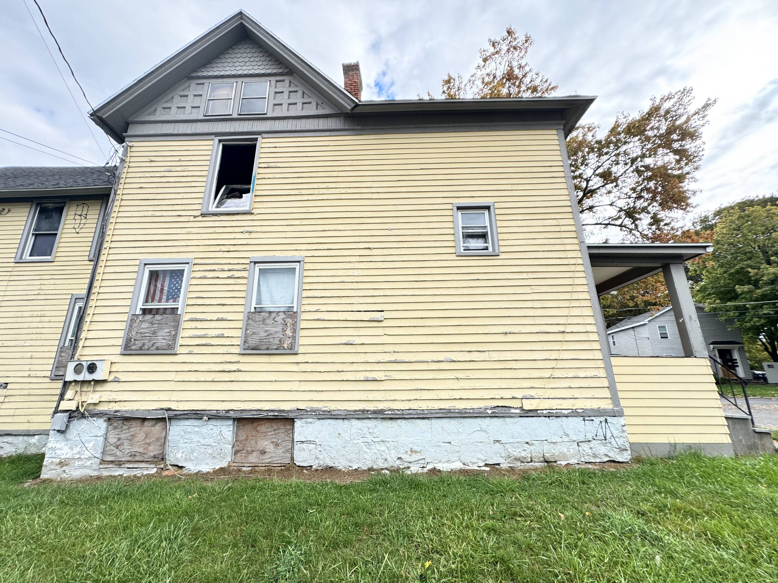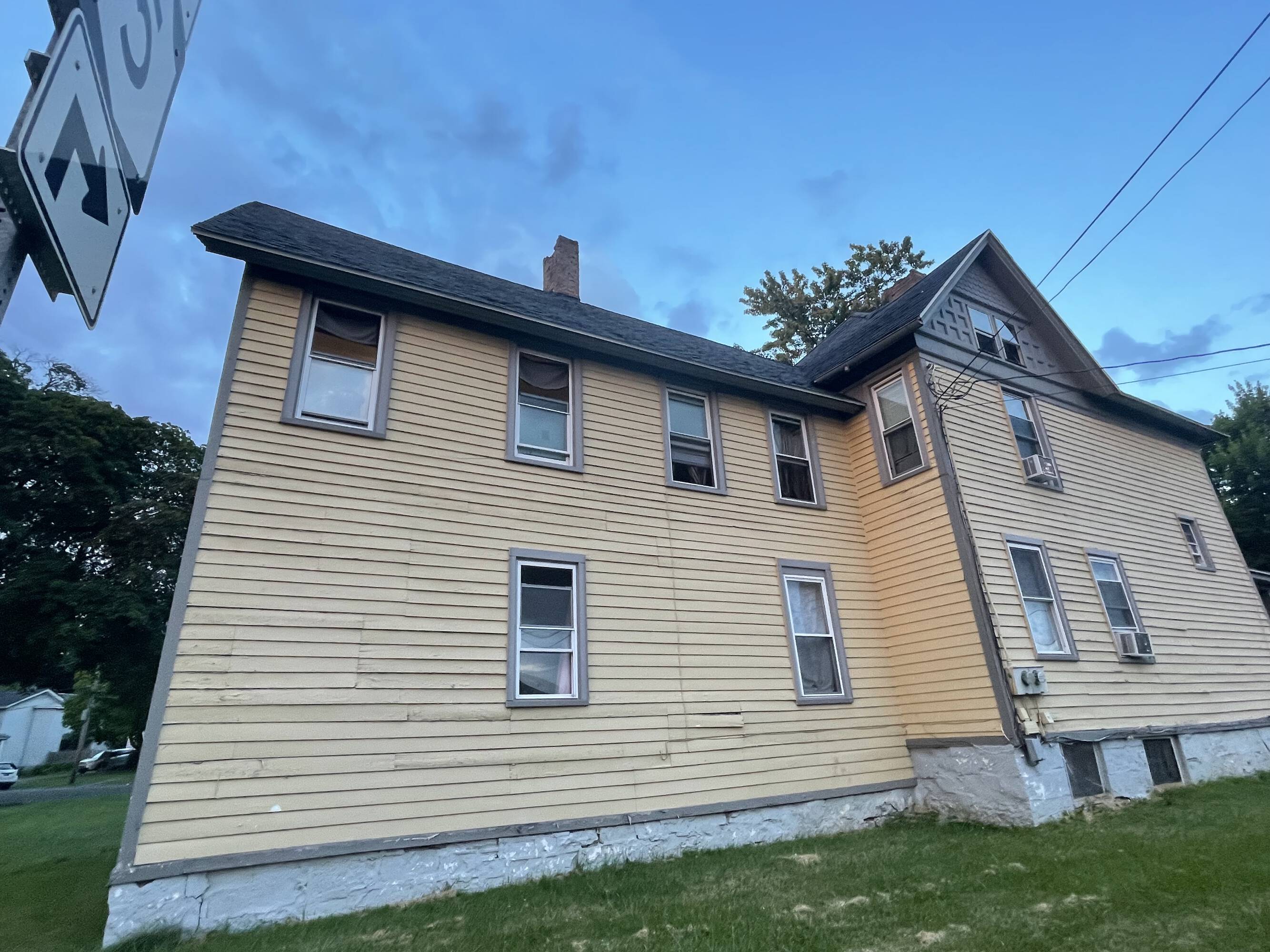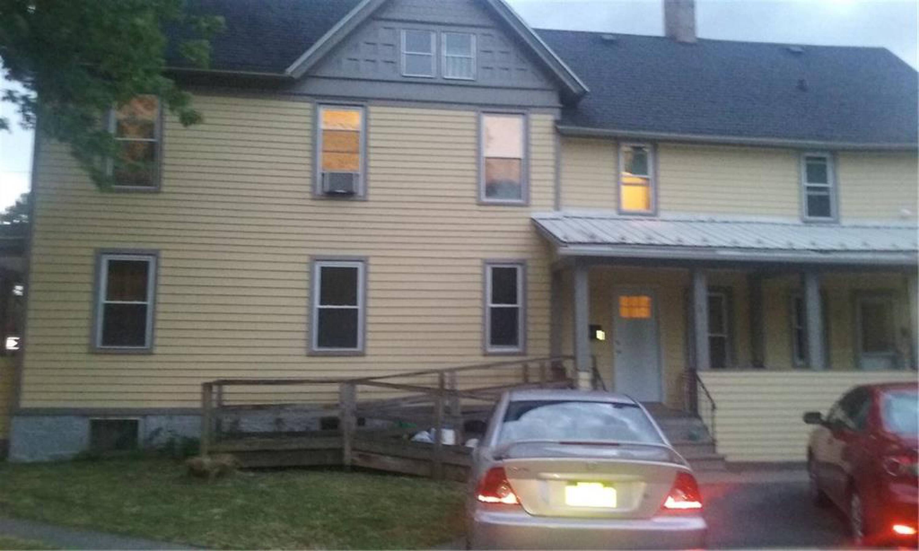 Two-unit building with separate utilities and off-street parking.