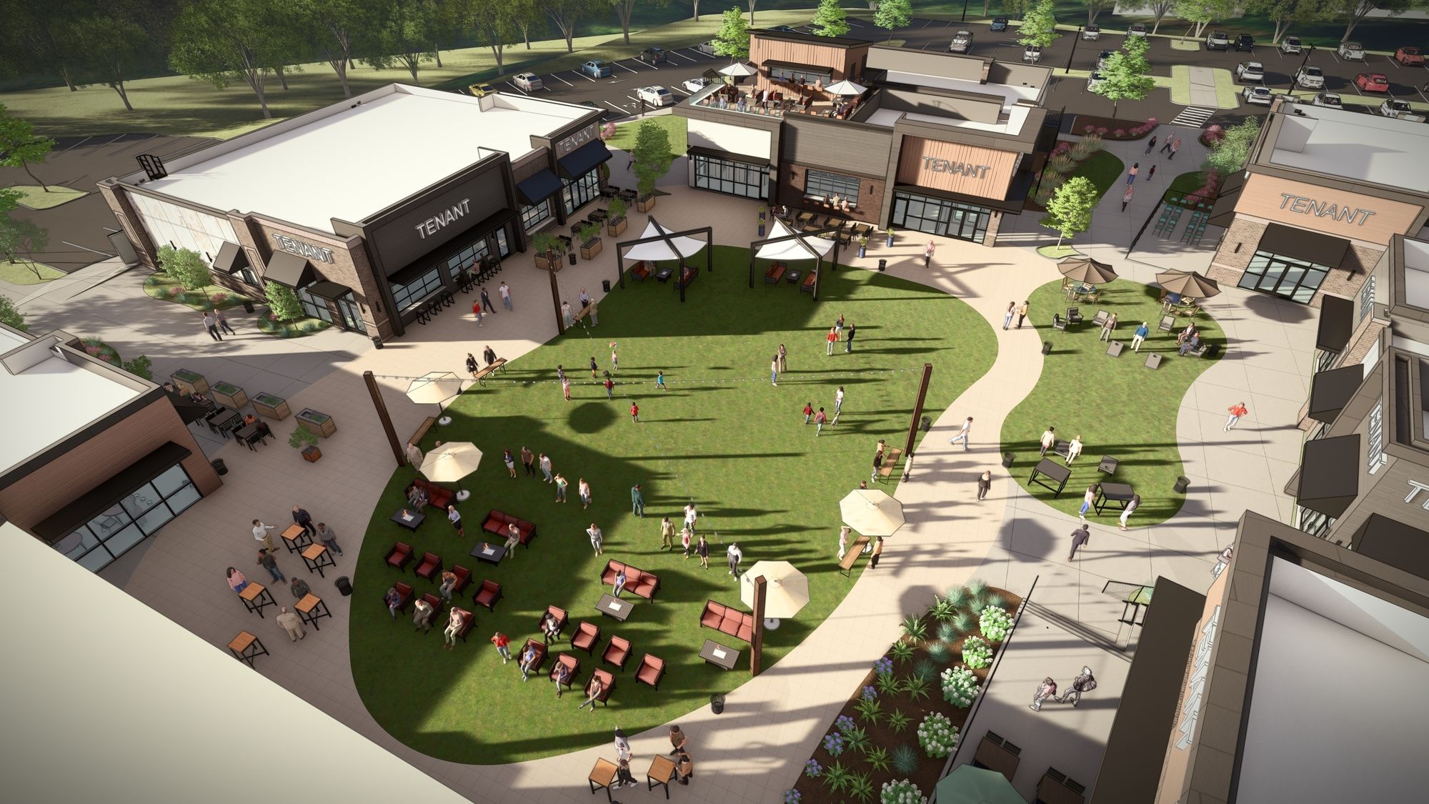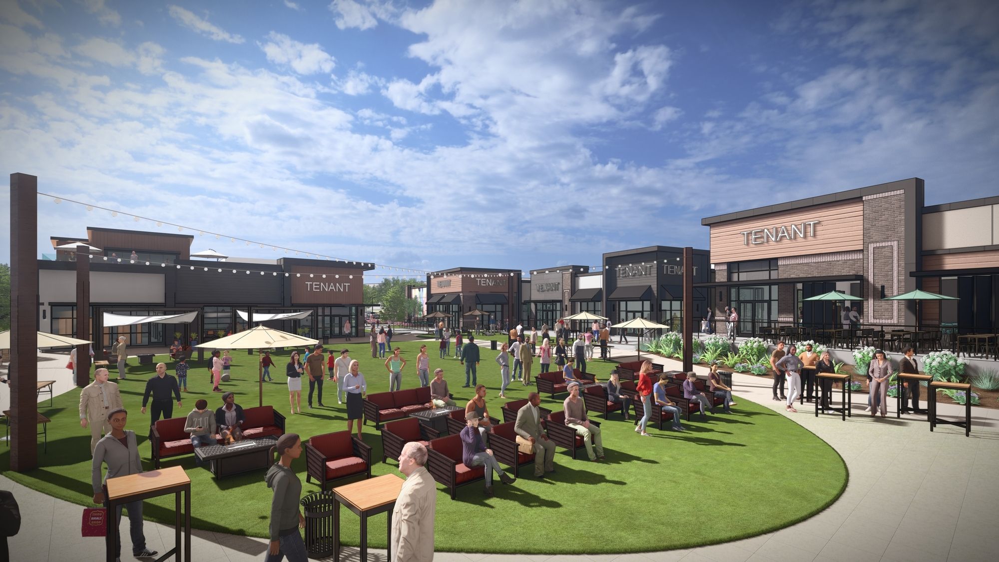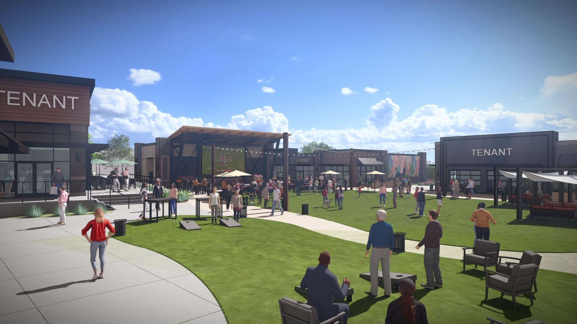 Retail development with restaurants, shops, and entertainment.