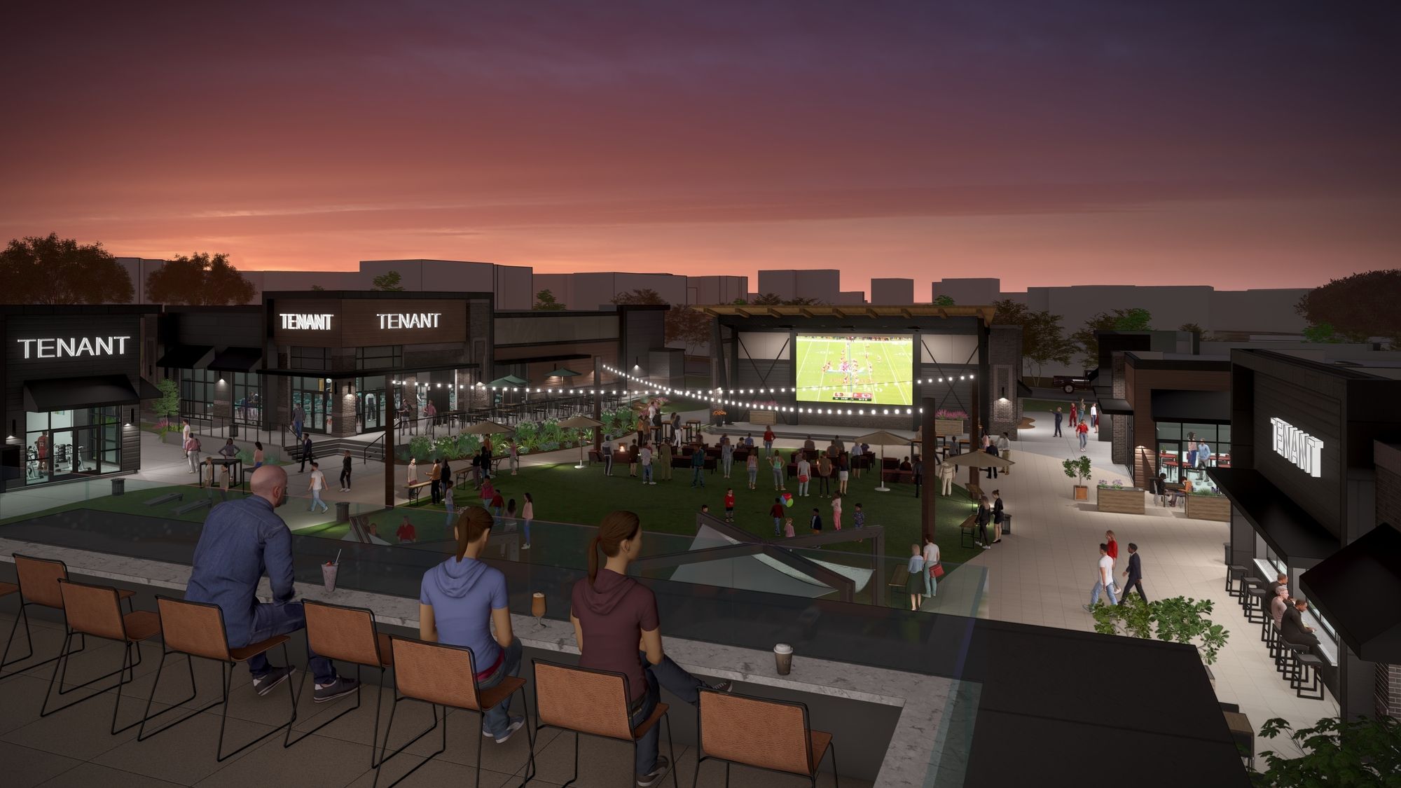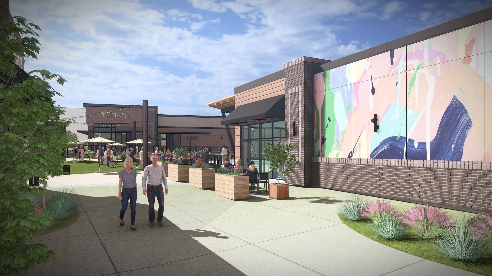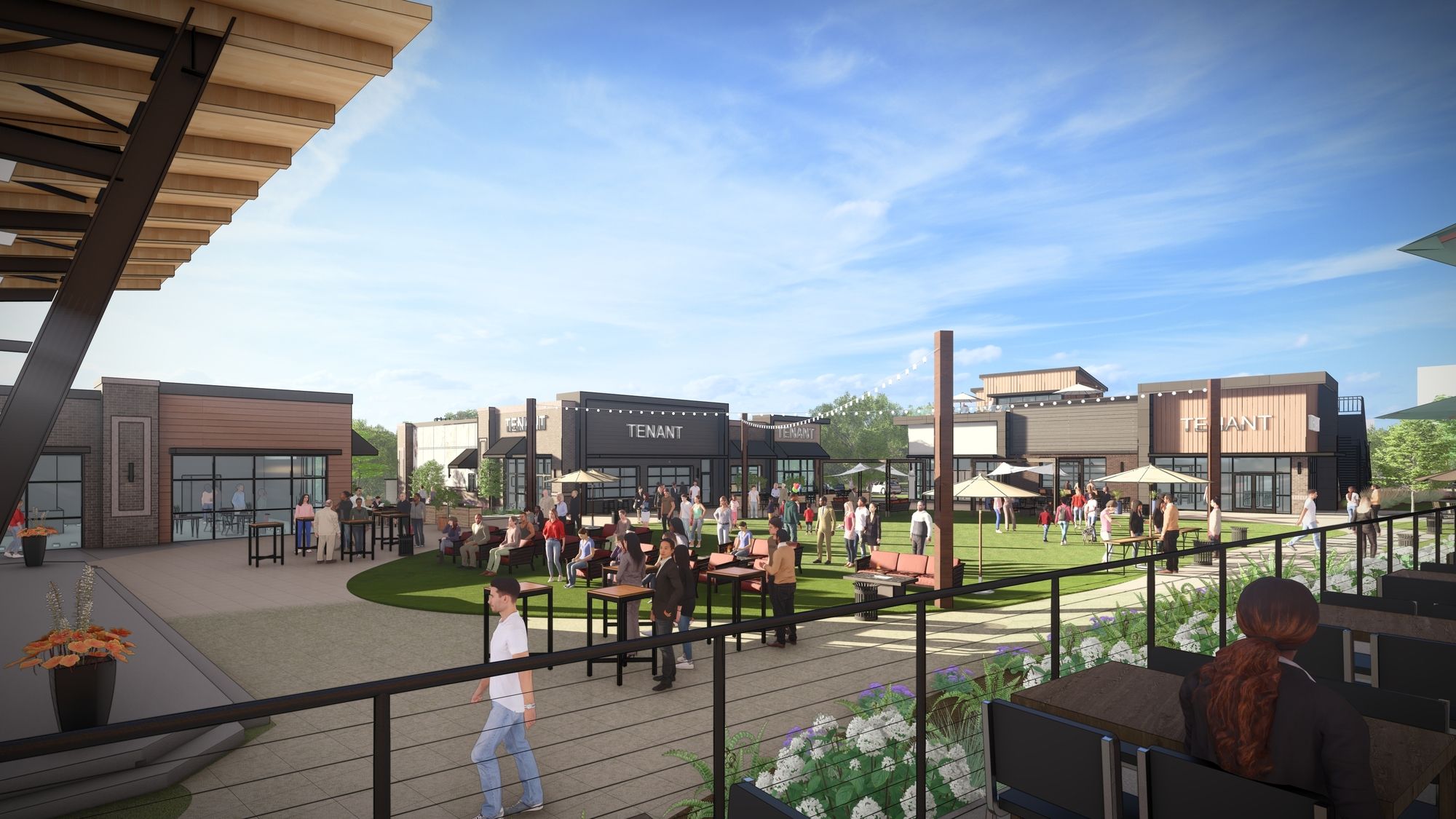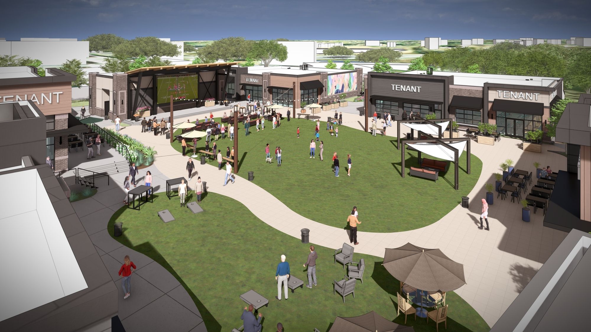 Retail development with restaurants, shops, and entertainment.