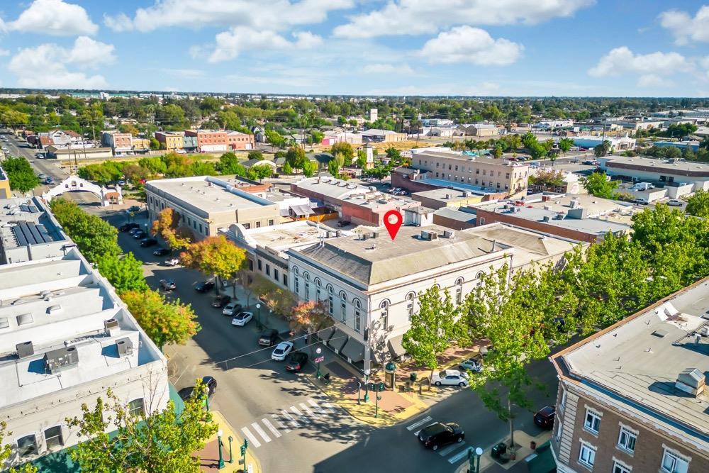 Corner property located in downtown Lodi, California.