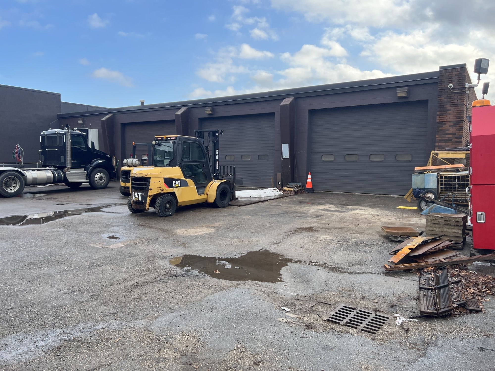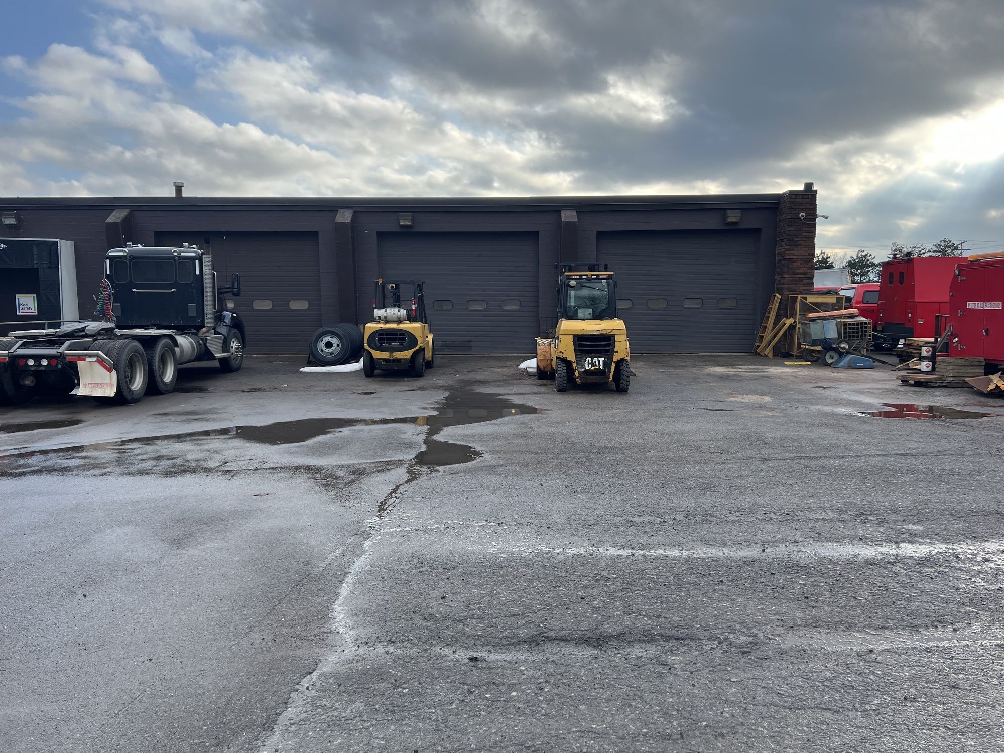 Industrial space featuring a loading dock and multiple drive-in doors.