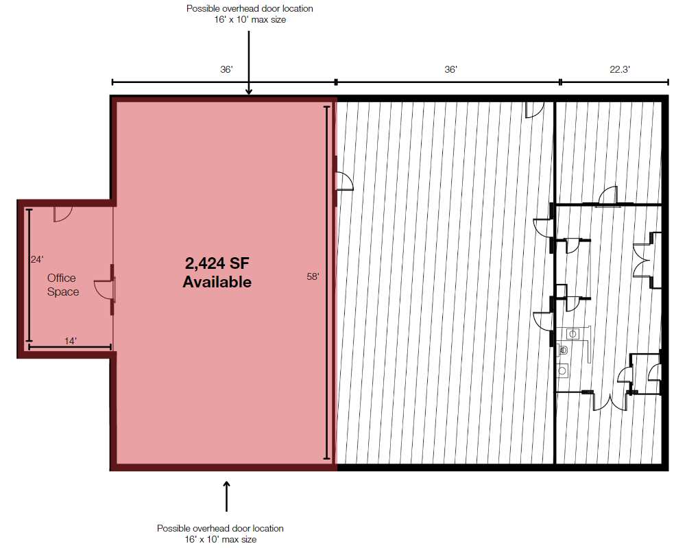 2,424 SF contractor space with large, fenced-in secure lot.