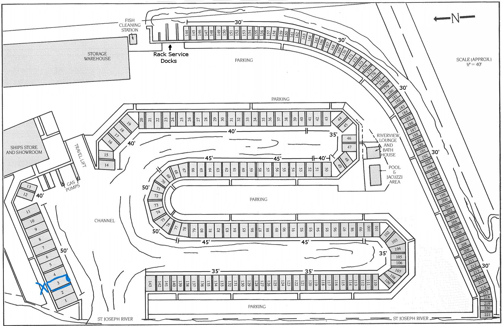 50' dockominium with amenities and river views for sale.