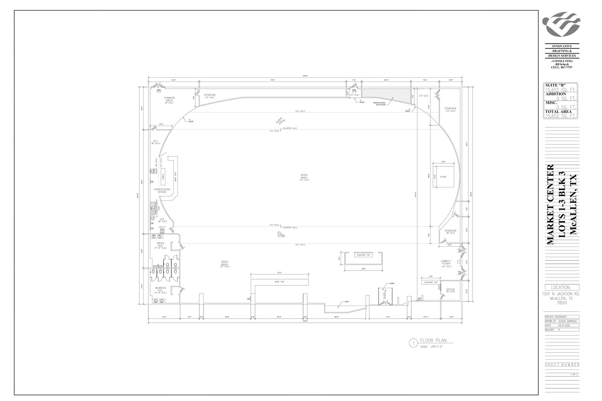 15,652 SF commercial space suitable for retail or office.