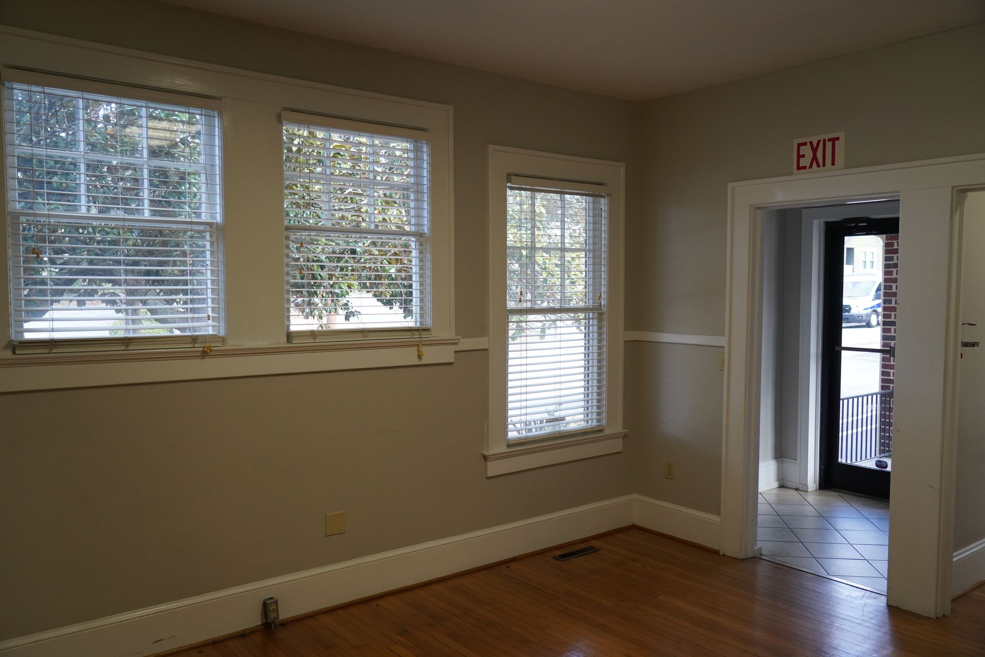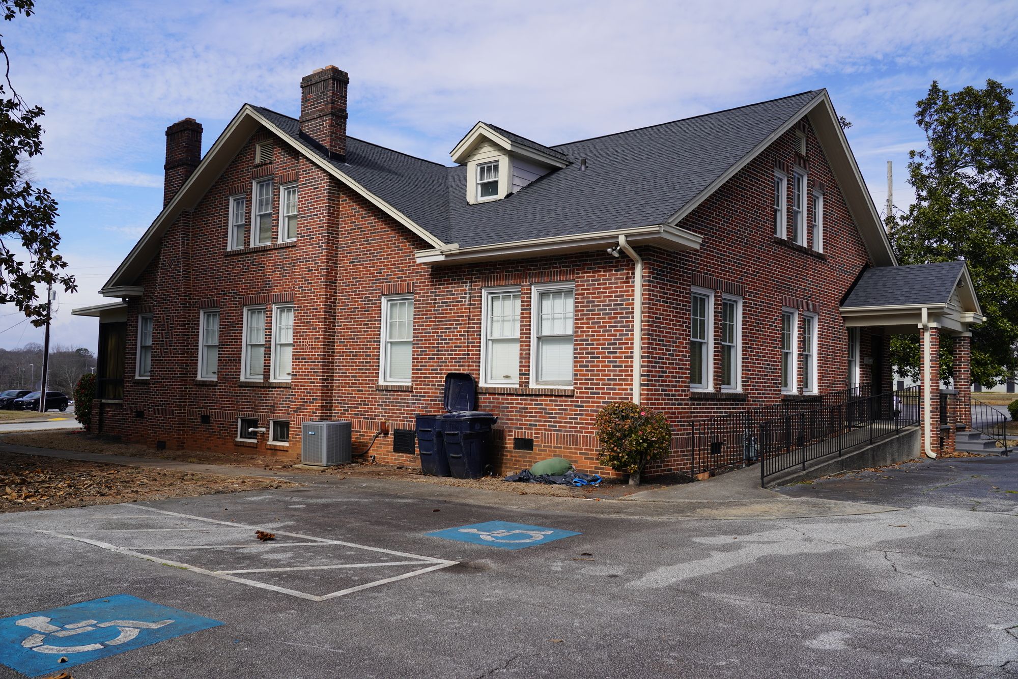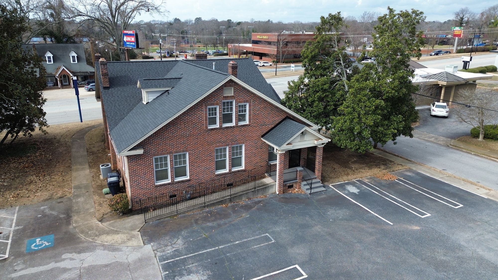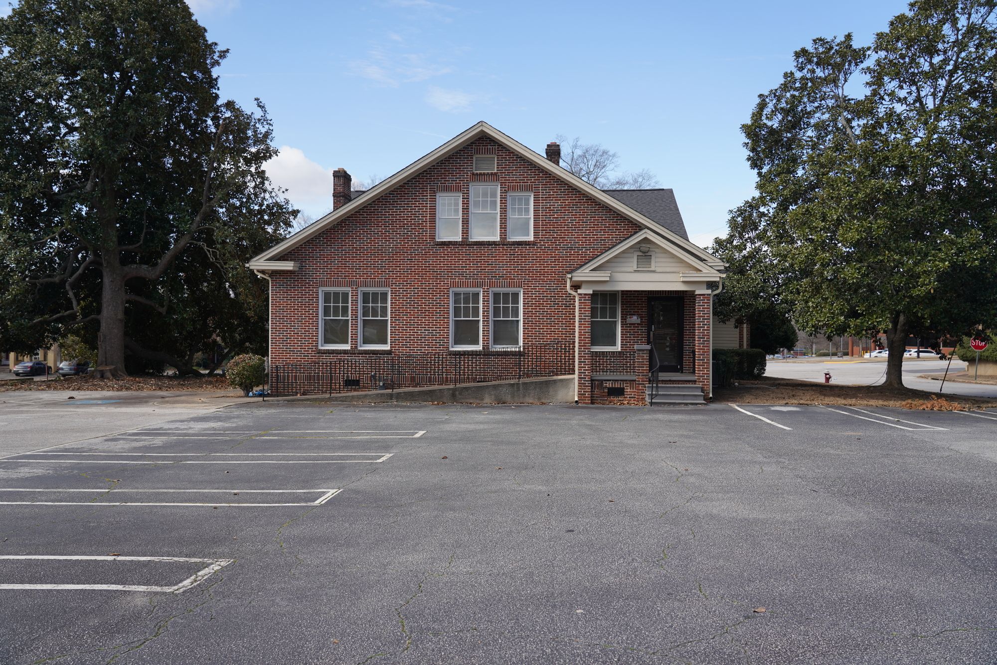 Two-story office building in downtown Anderson with private parking.