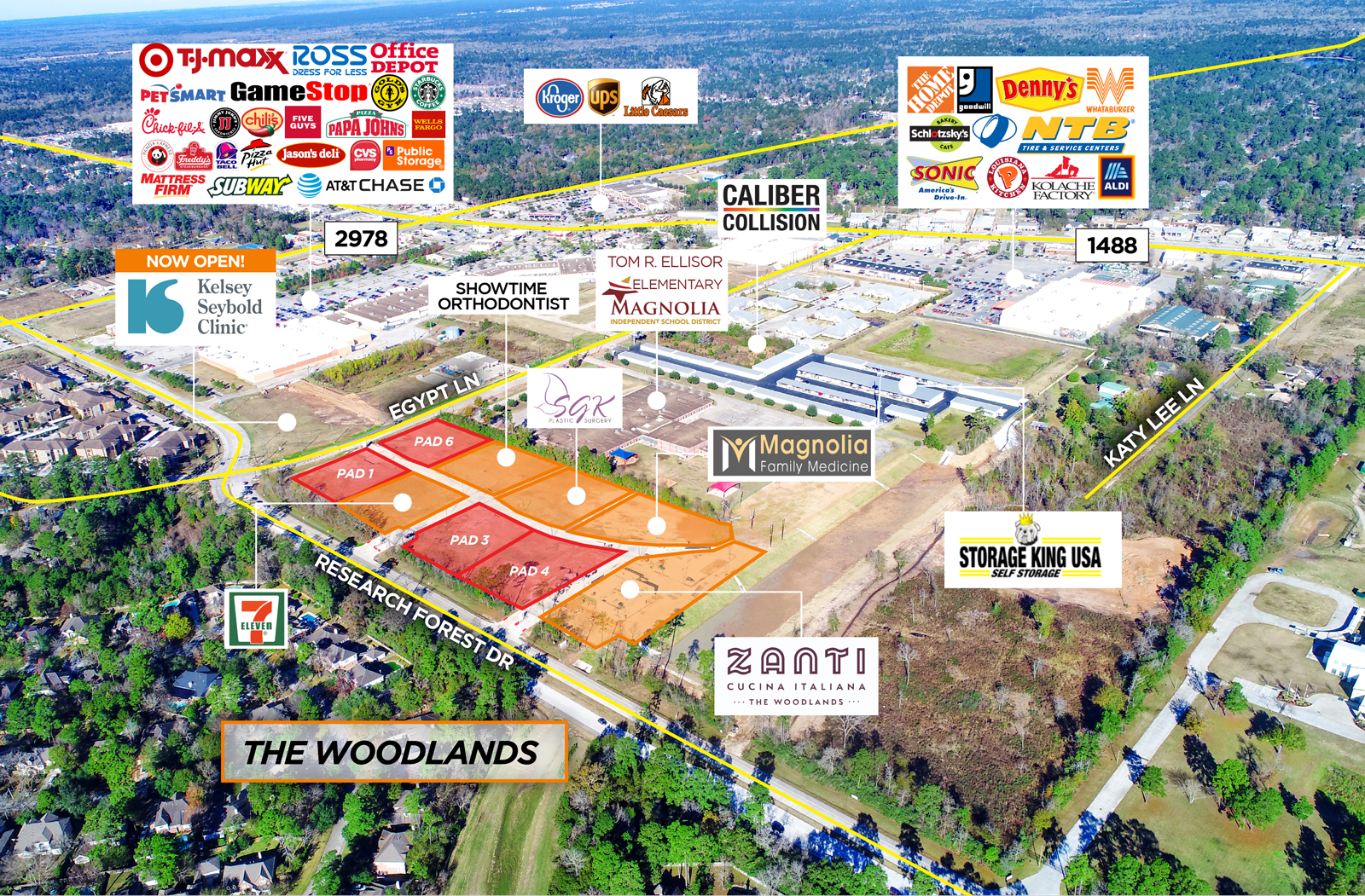 Commercial pad sites available in The Woodlands, Texas.
