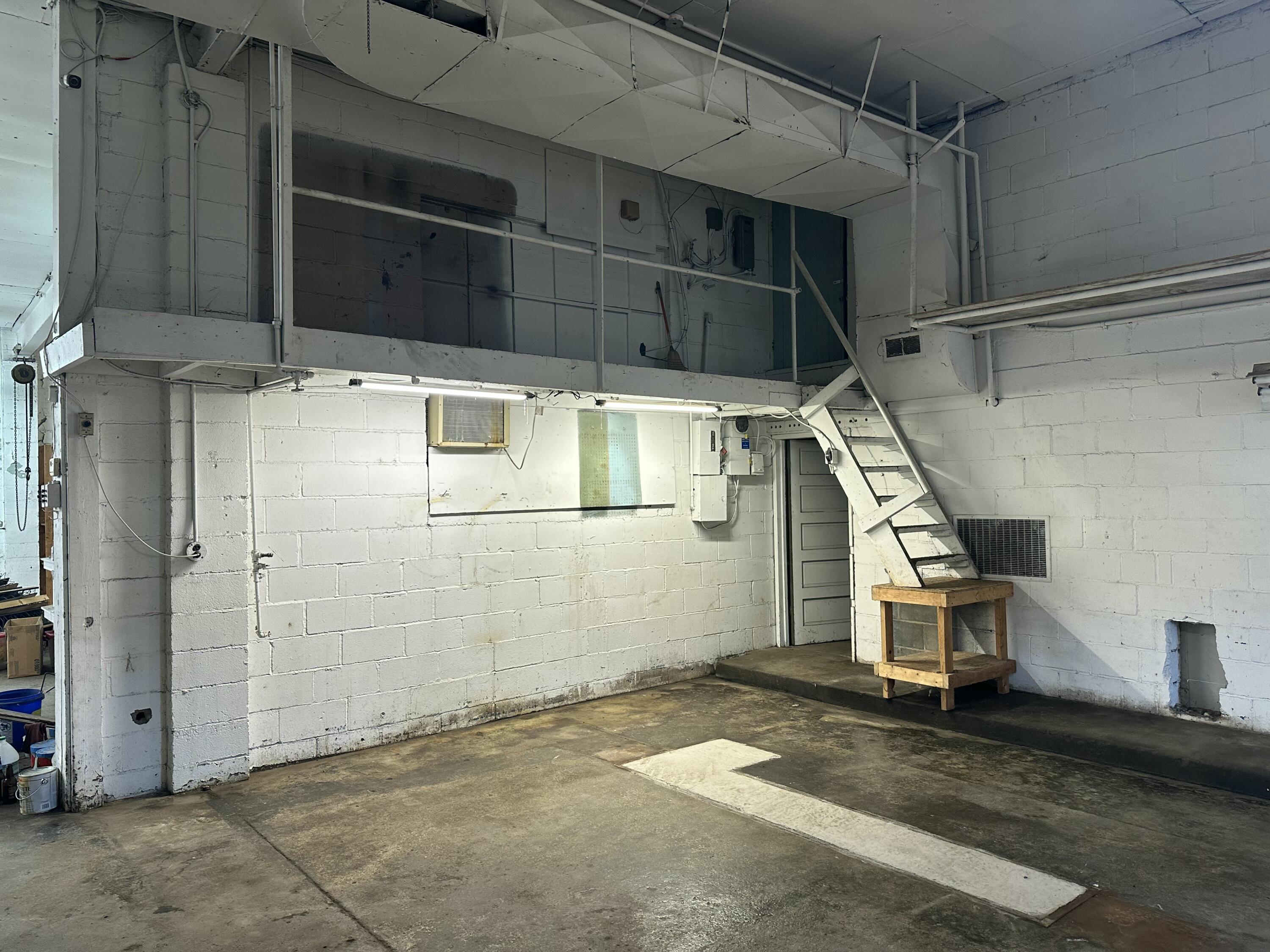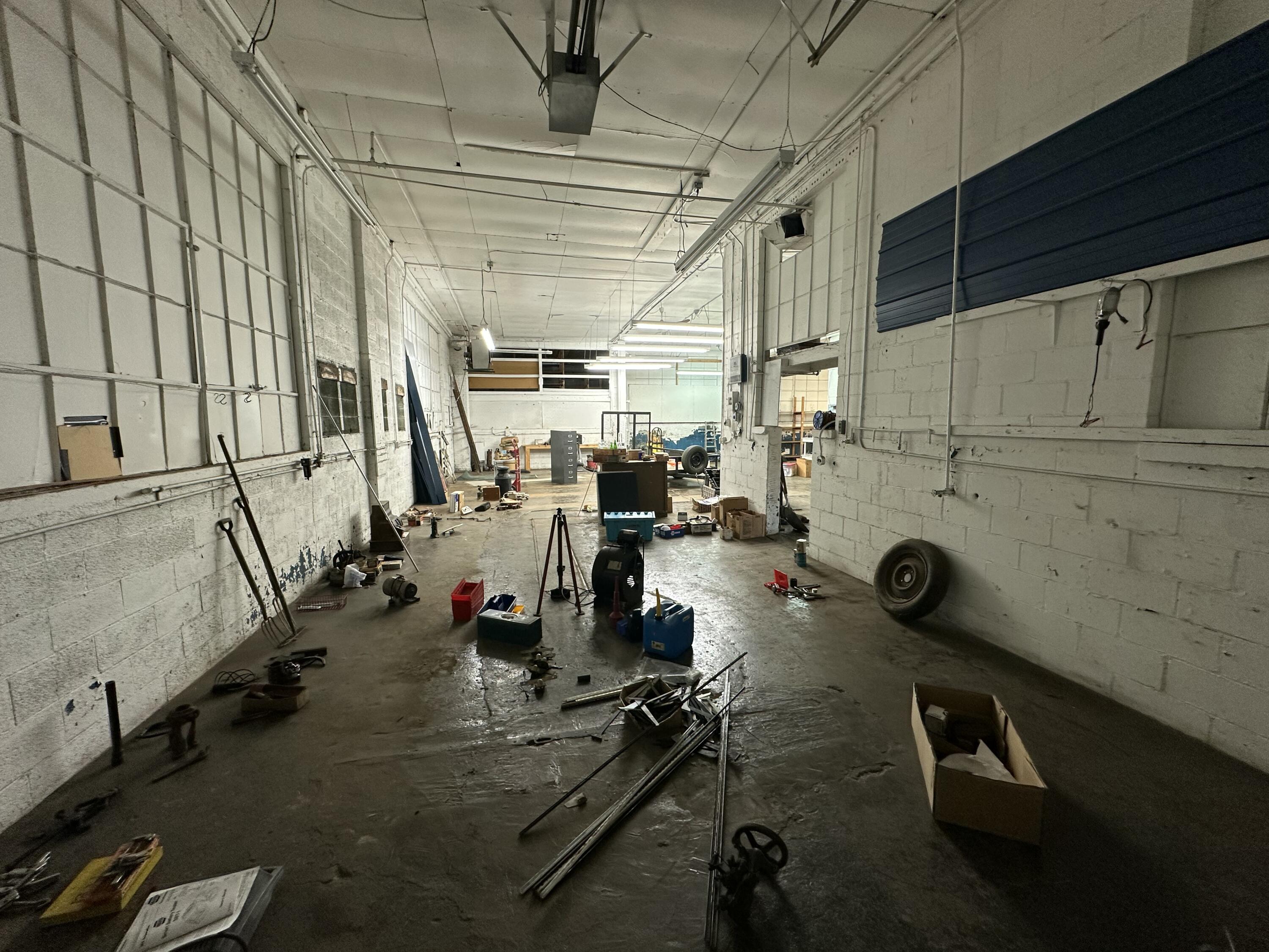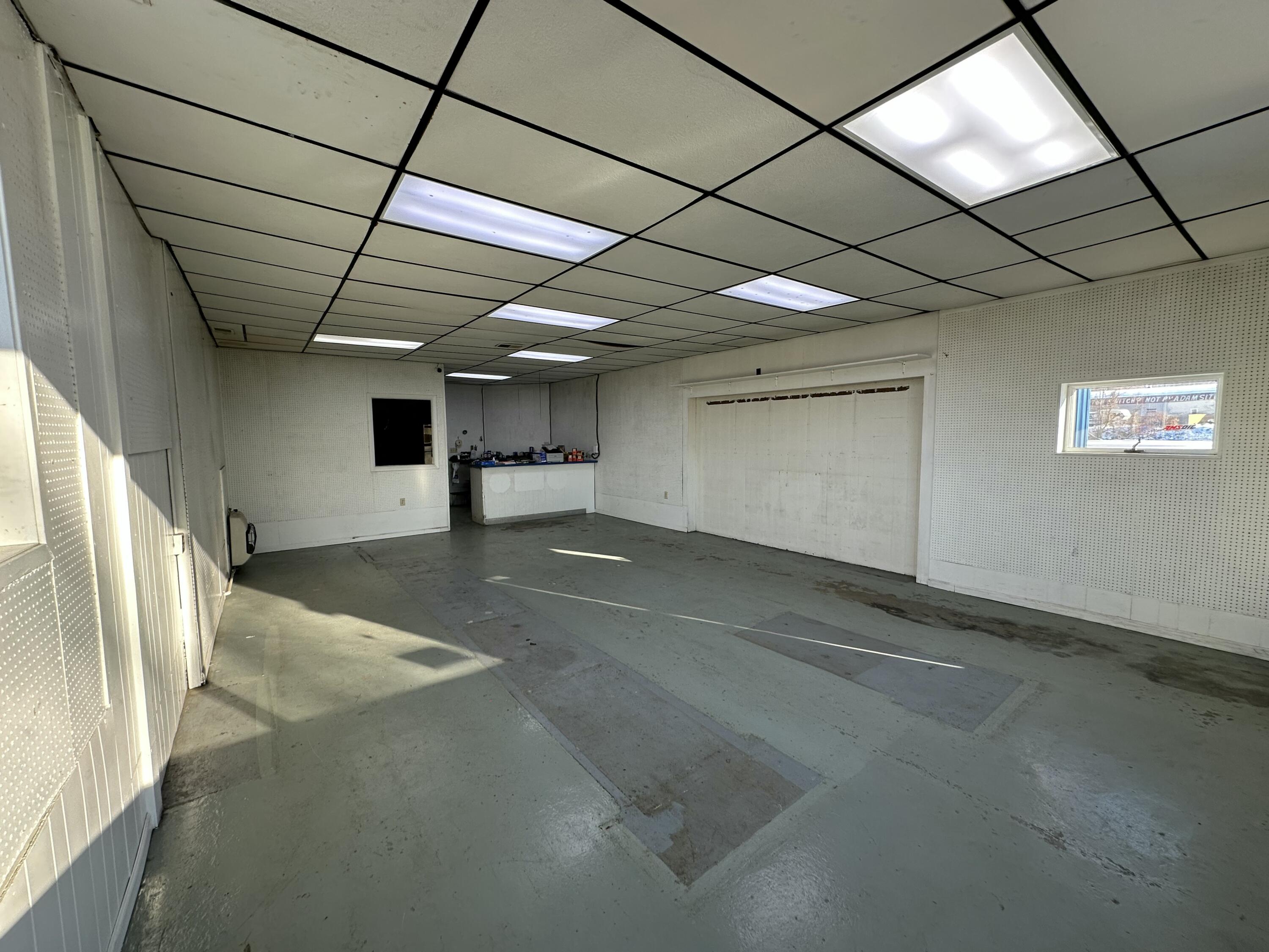 Commercial building with high ceilings and overhead doors for sale.
