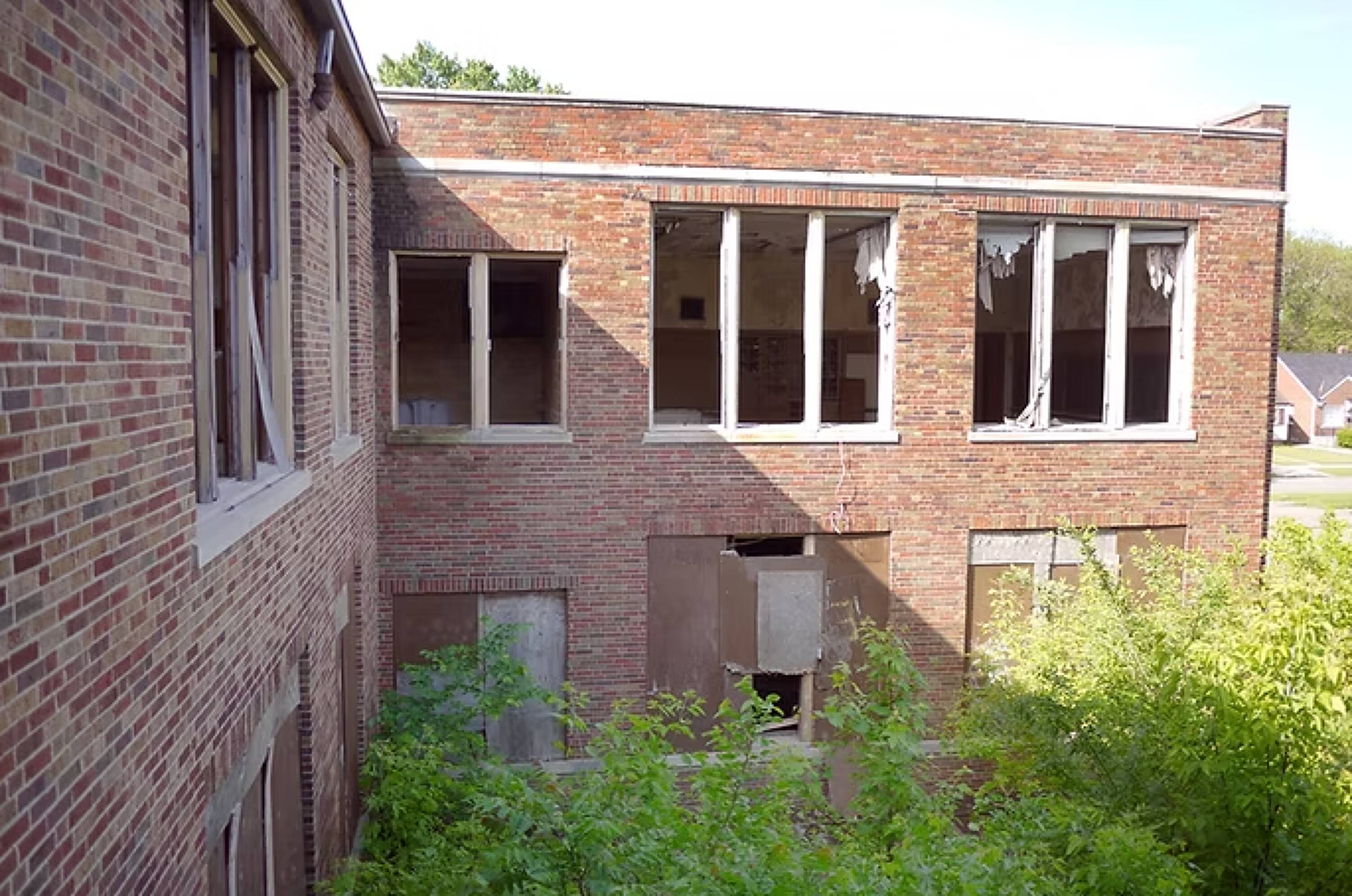 Architecturally distinctive Detroit school for redevelopment in Yorkshire Woods.