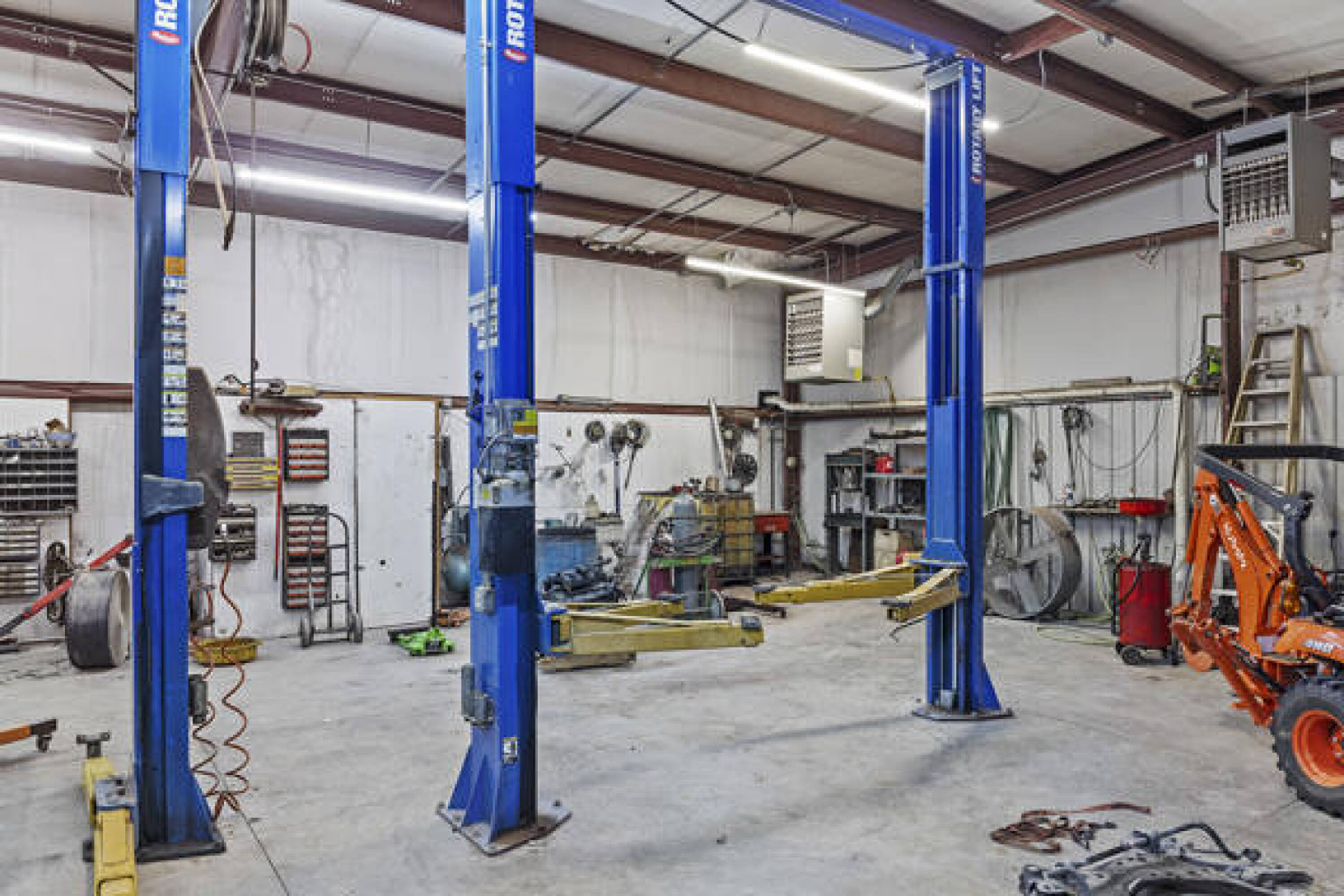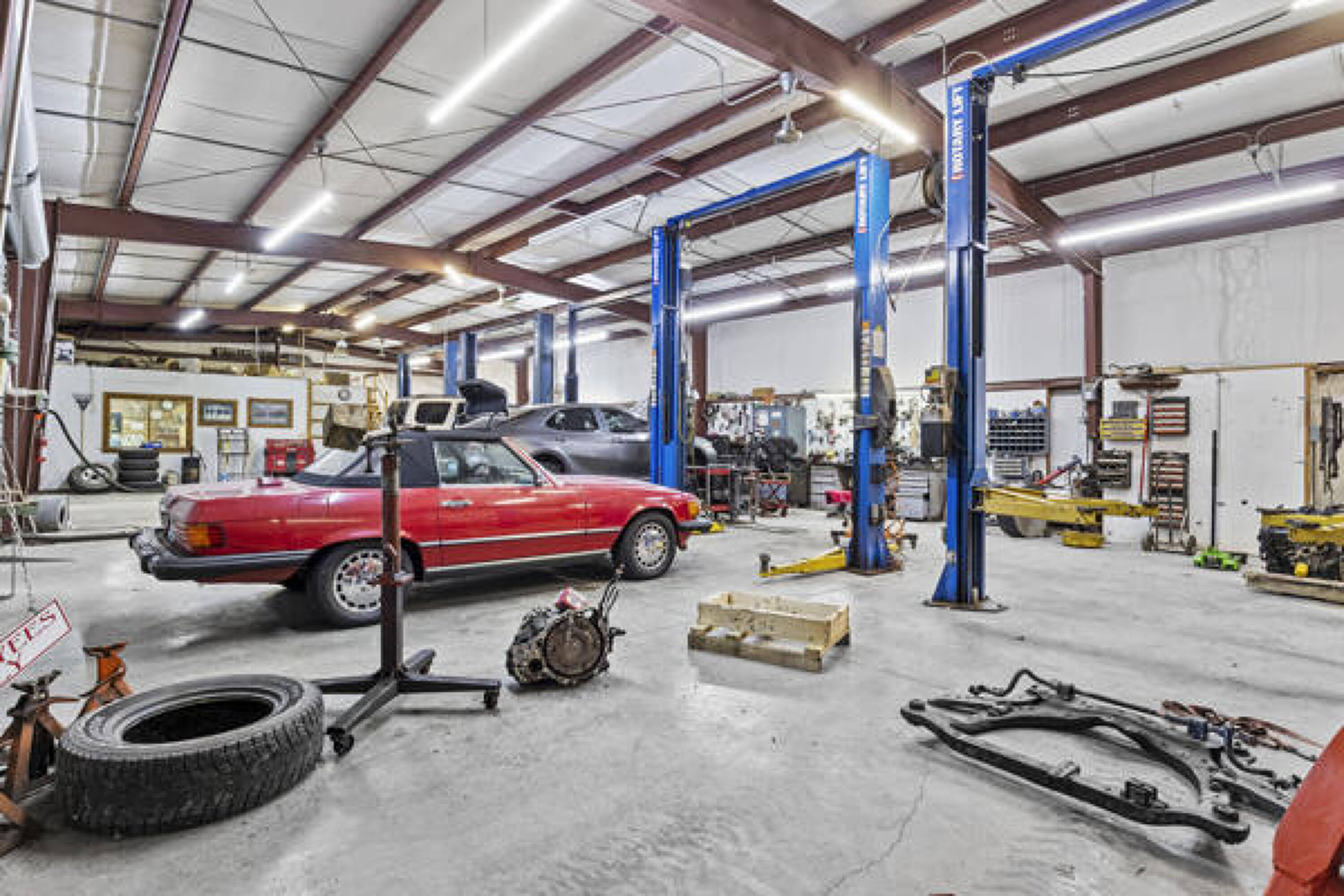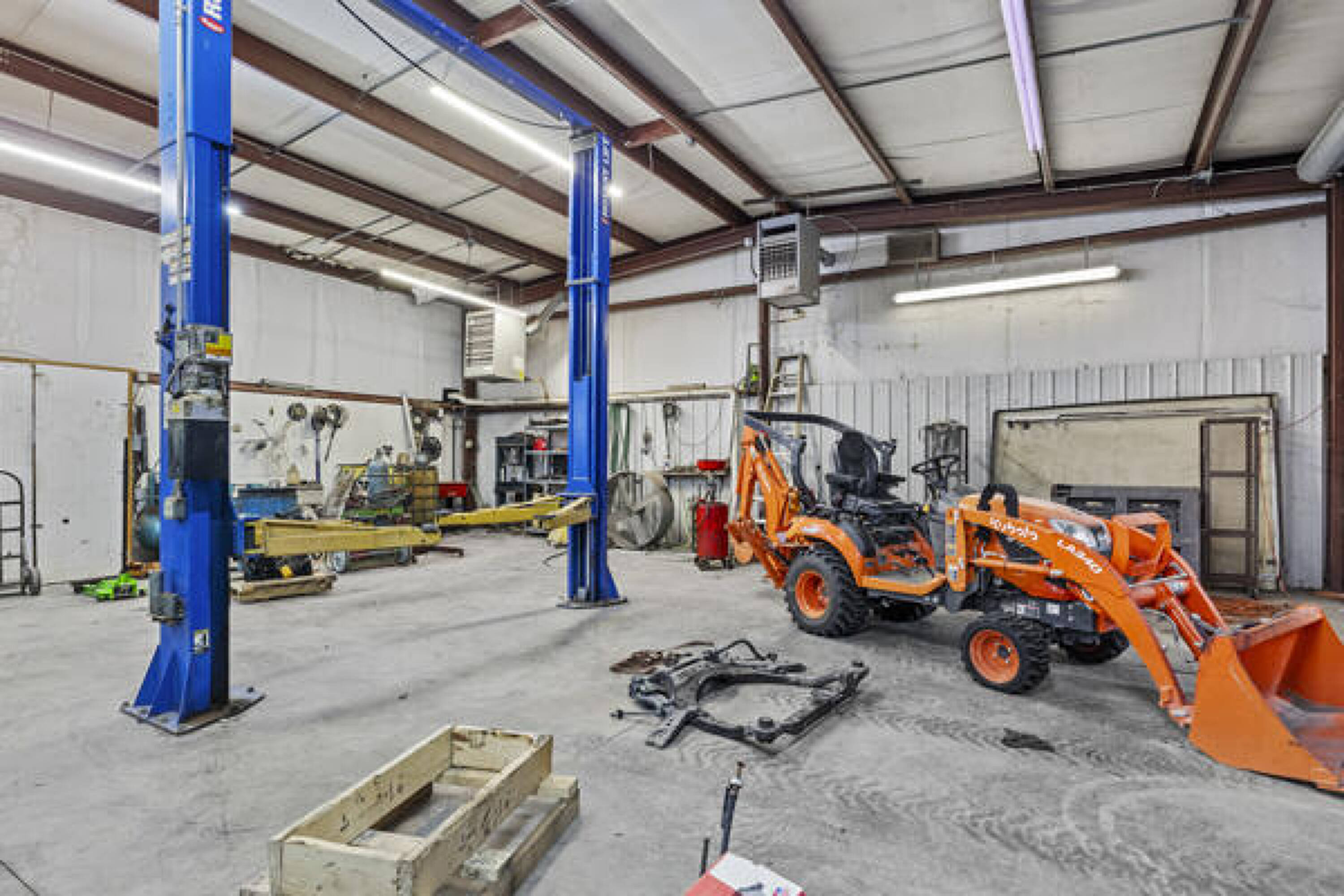 Versatile property with lifts, office, and ample parking.