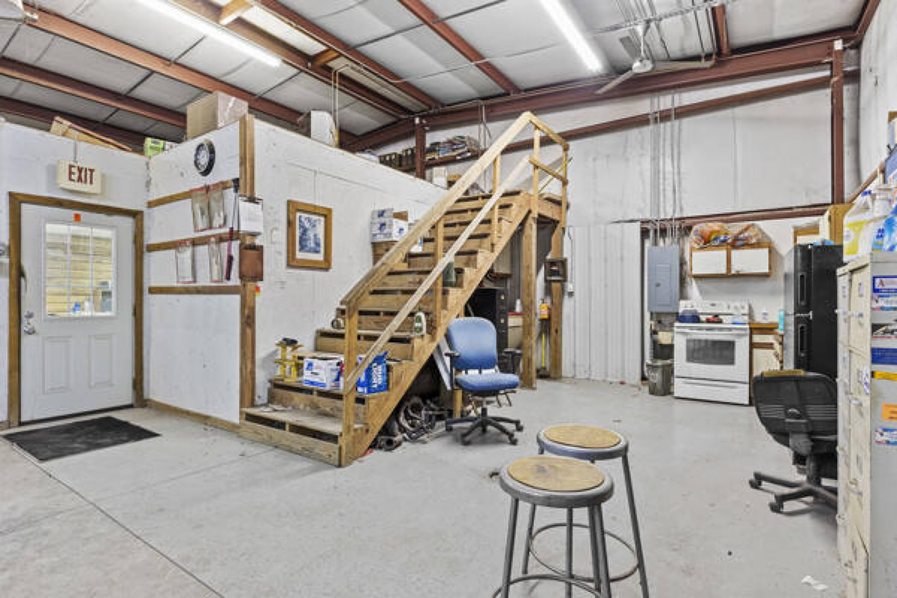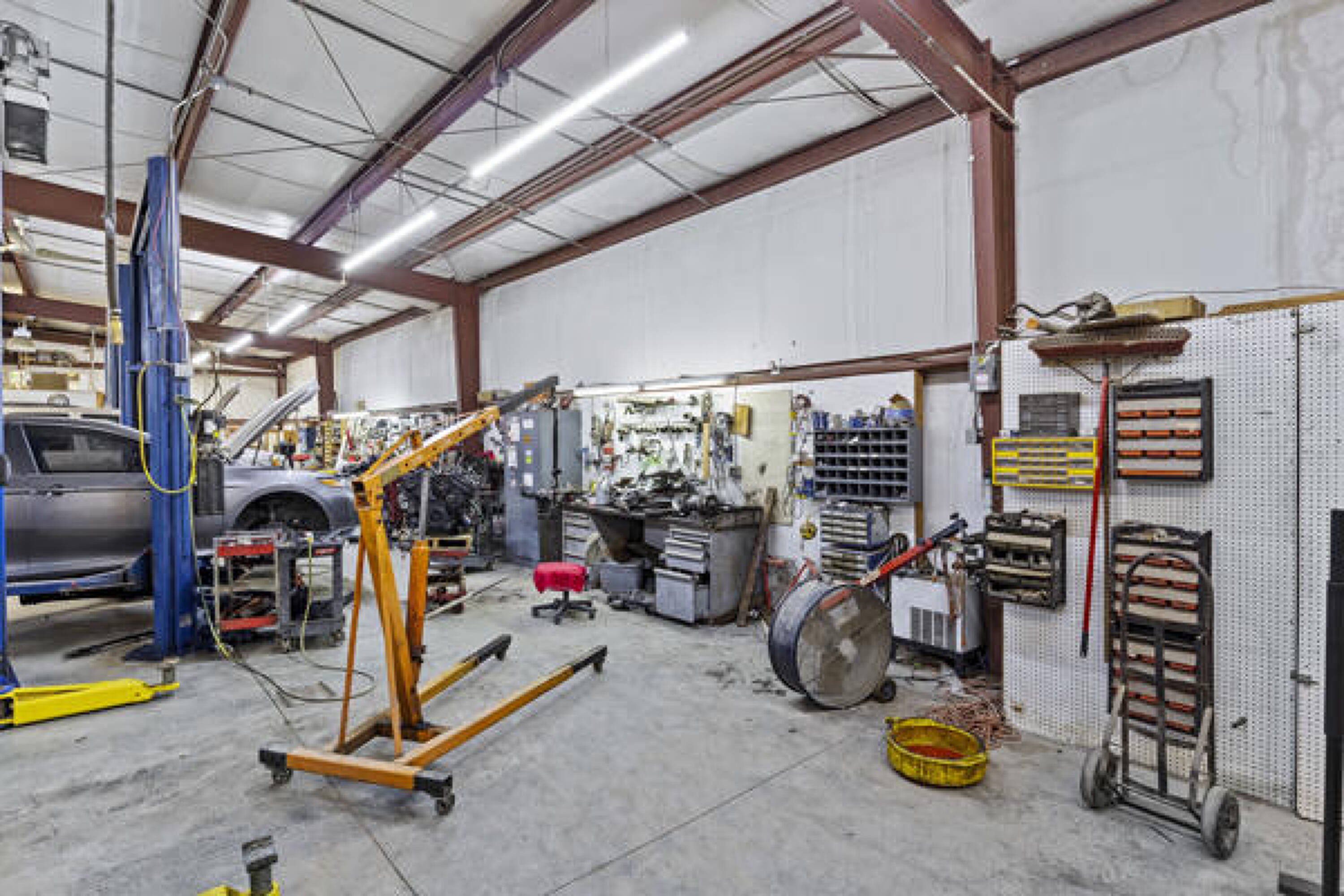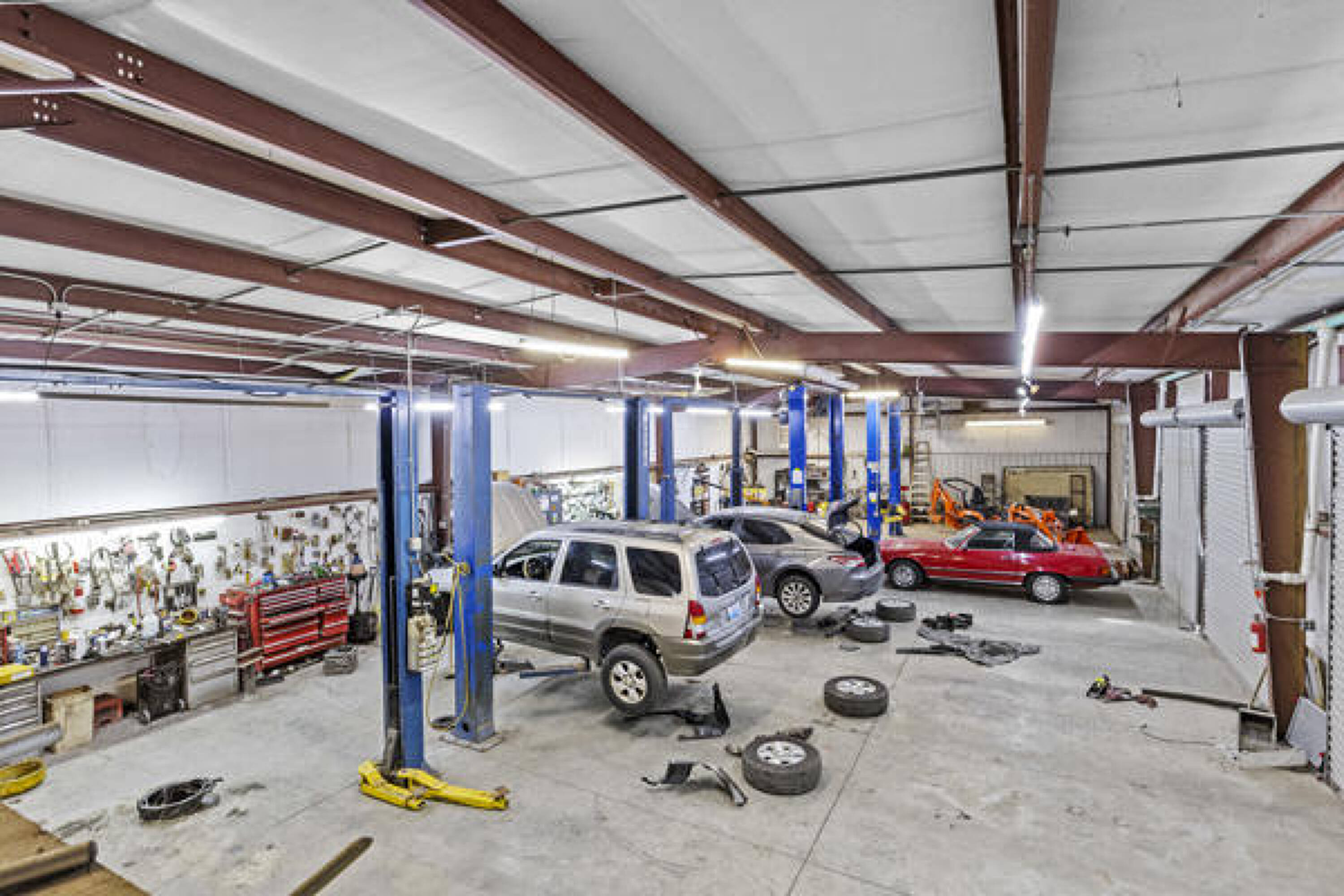 Versatile property with lifts, office, and ample parking.