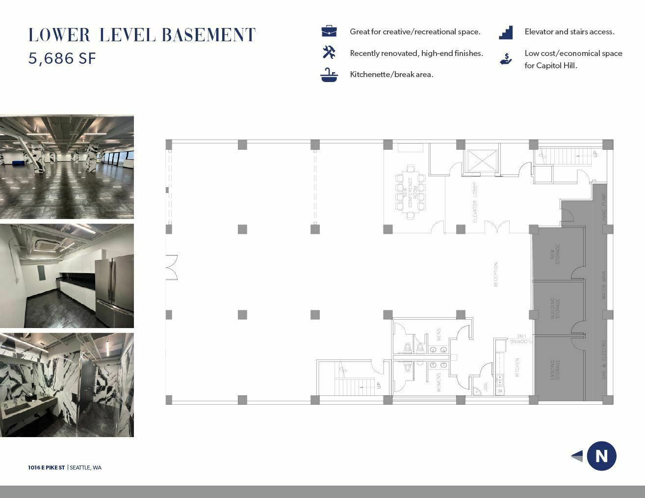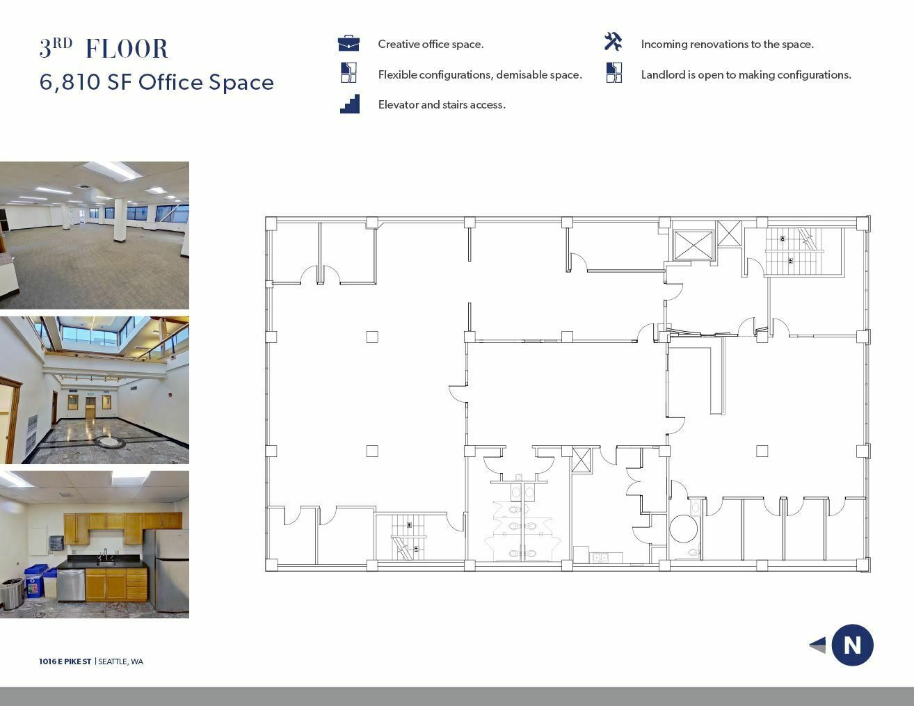 Freshly built-out office space in Pike/Pine corridor with modern amenities.