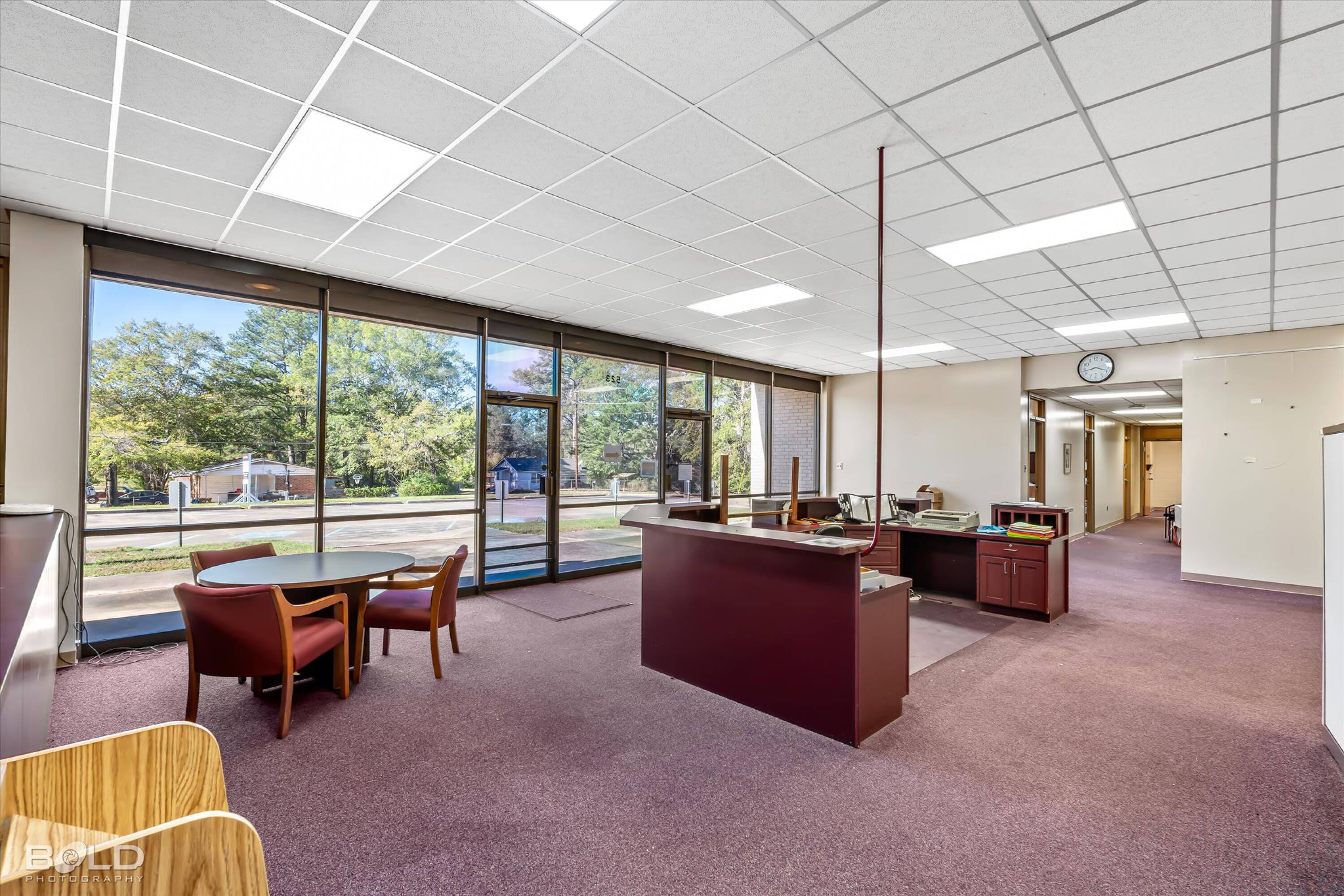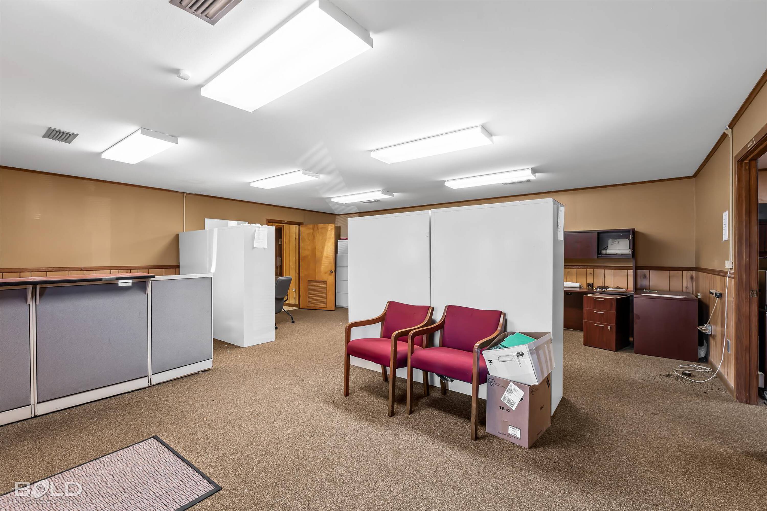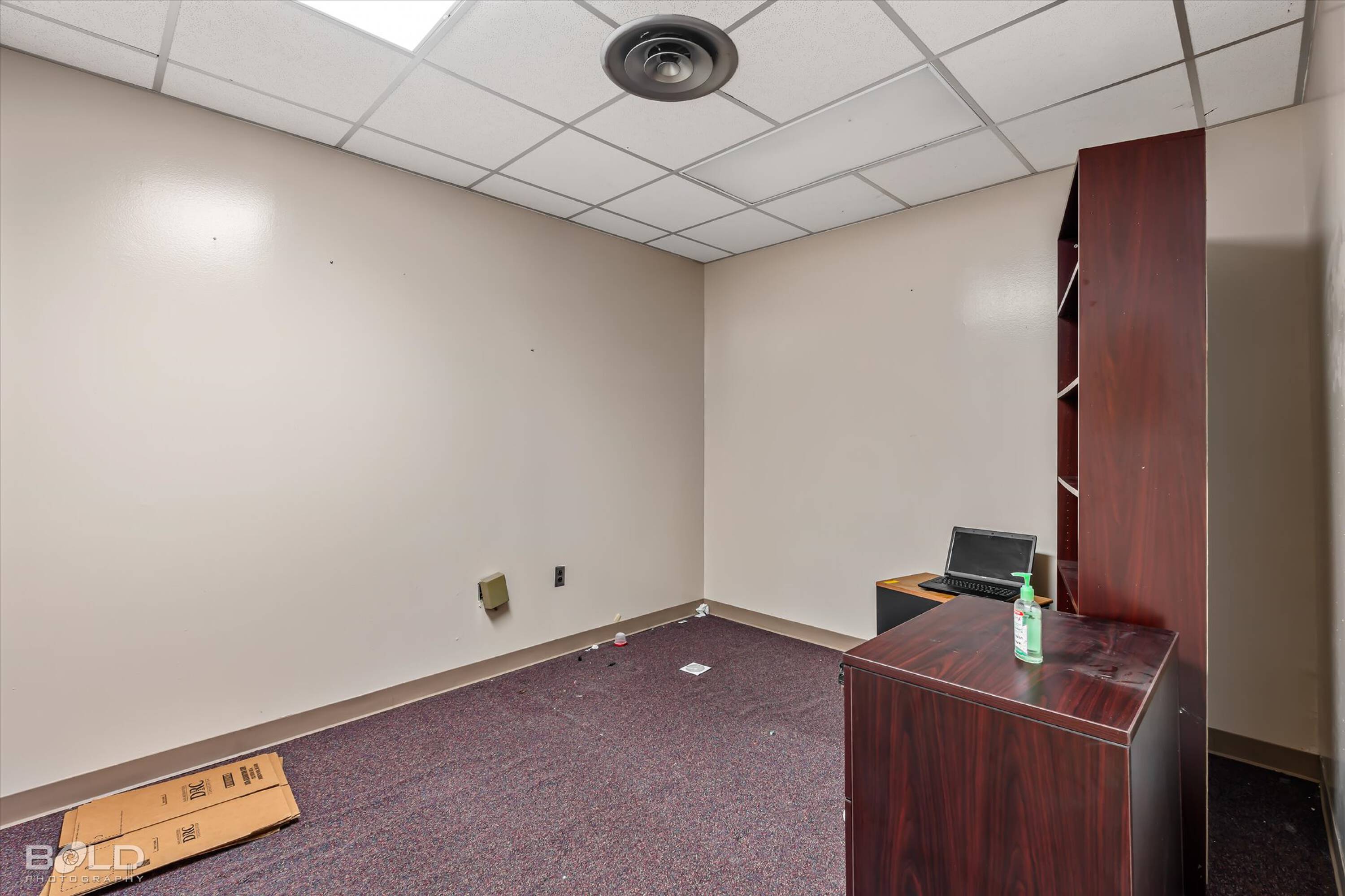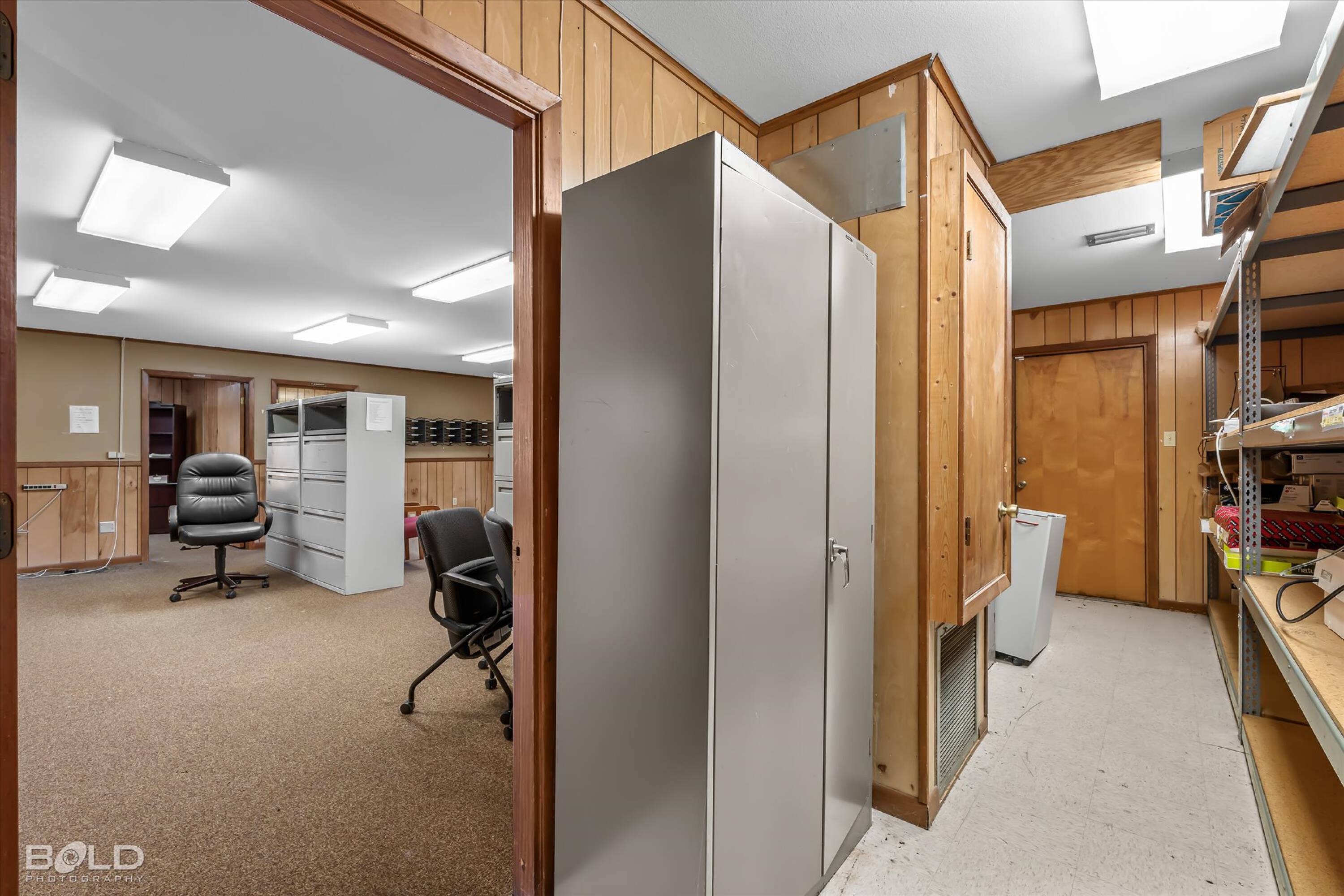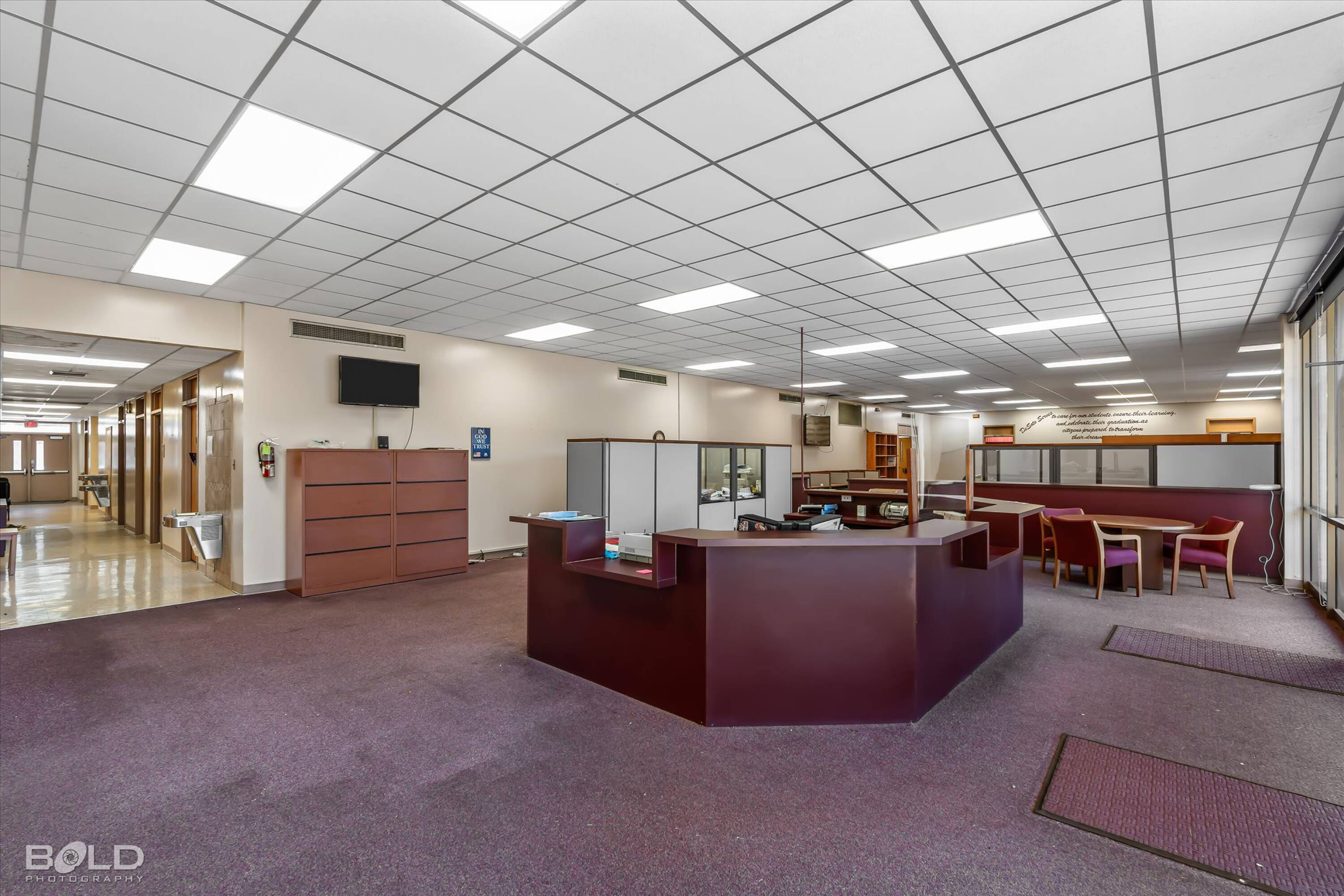 Adaptable commercial space with media center, warehouse, and special services.