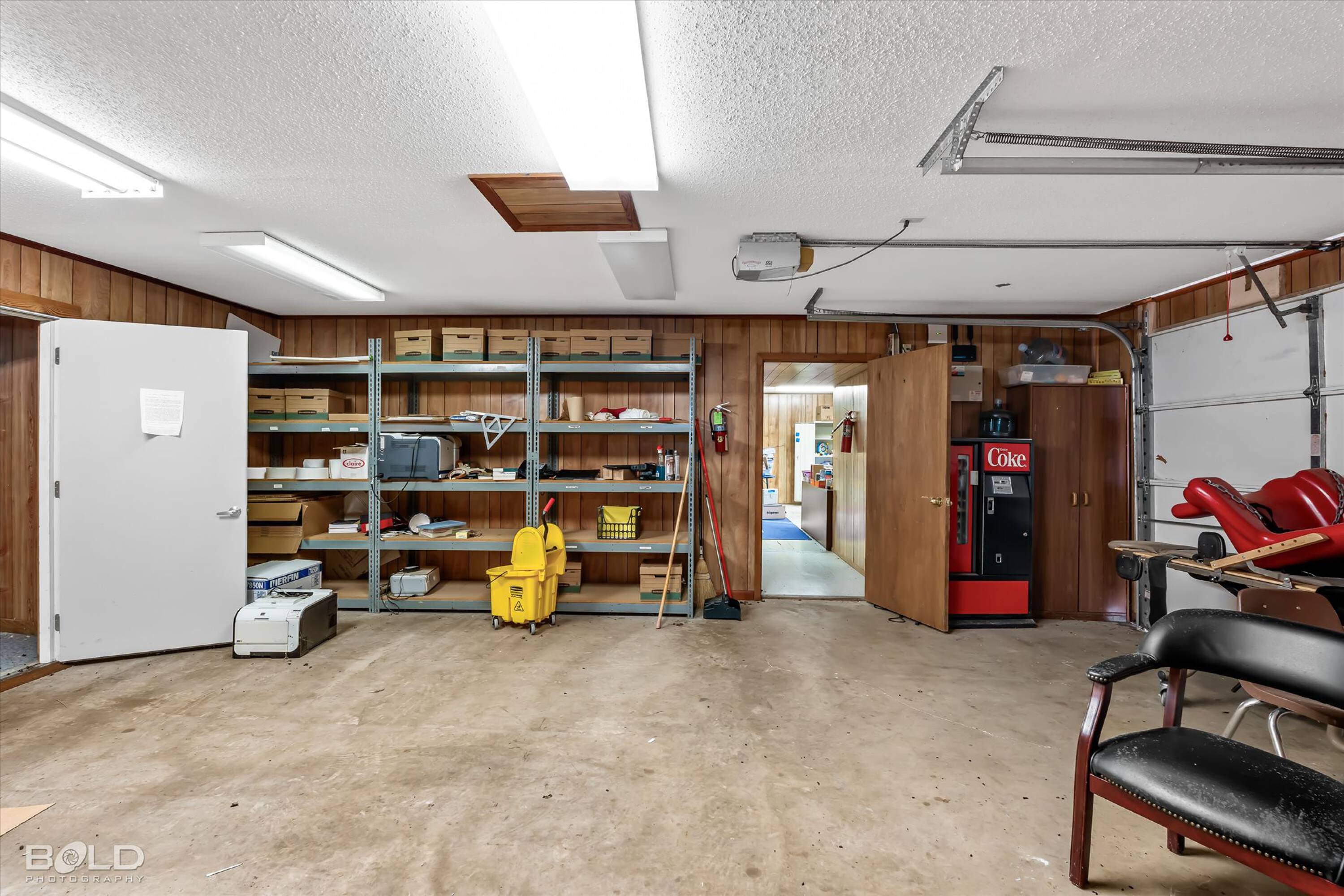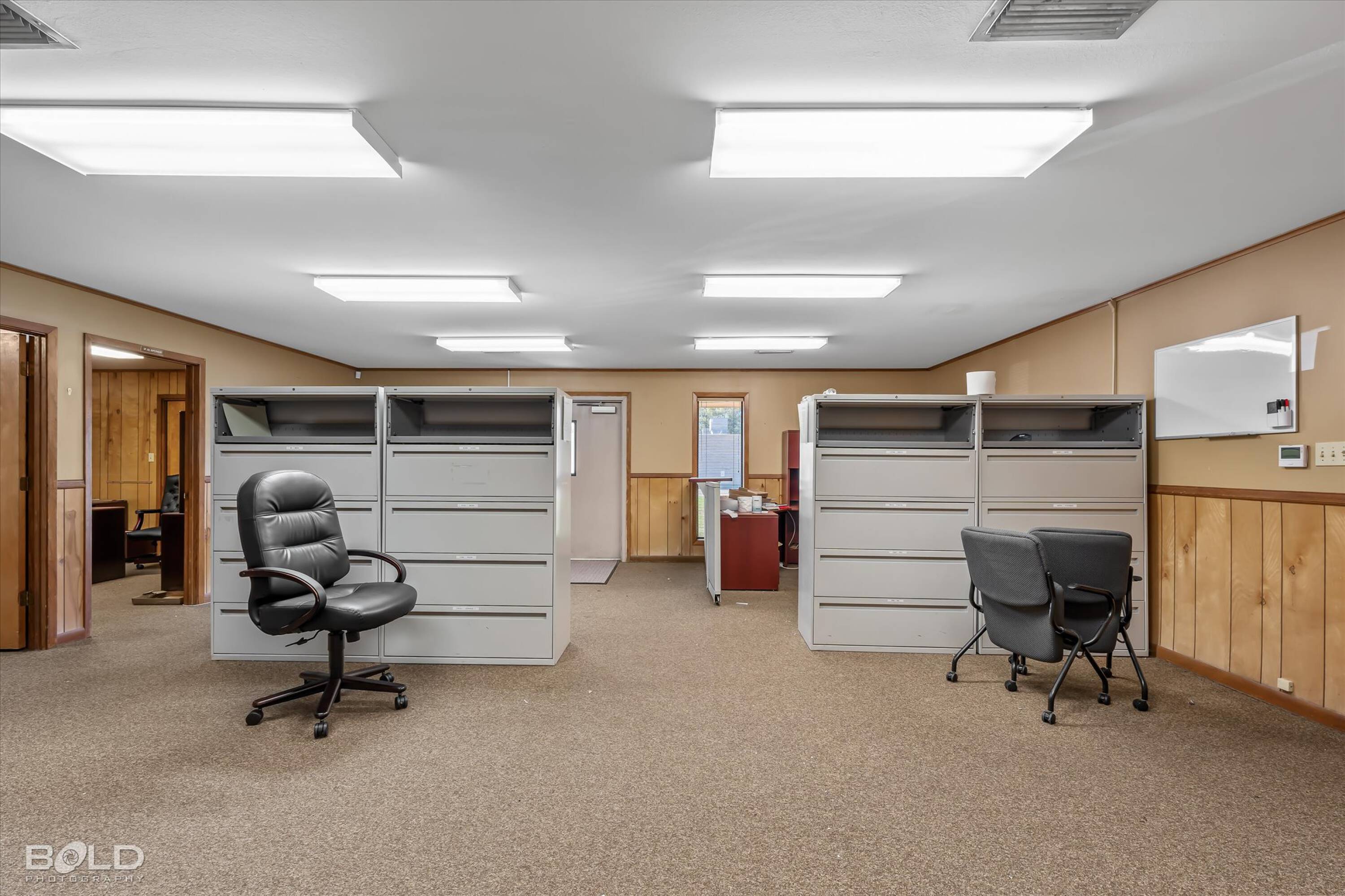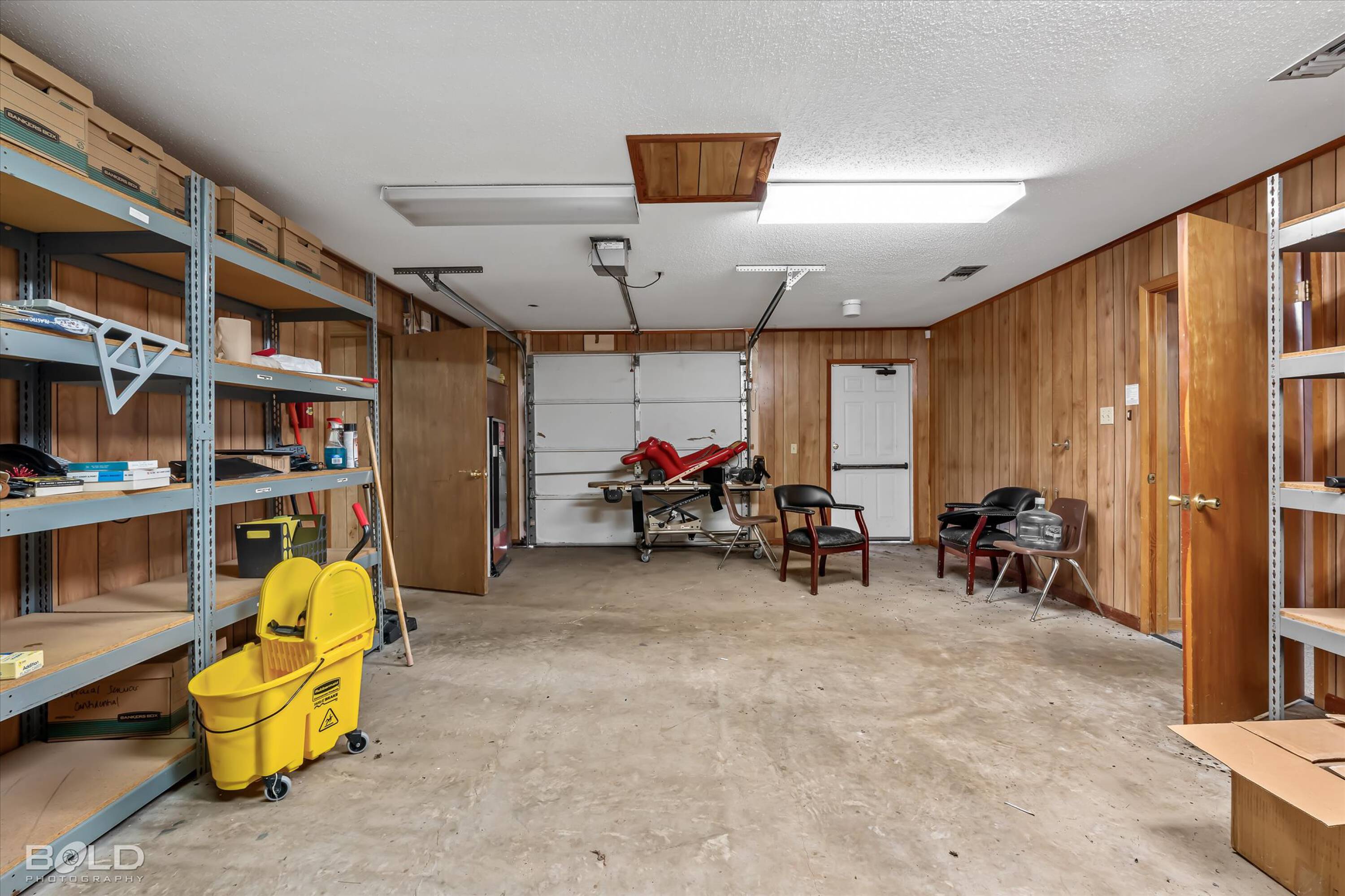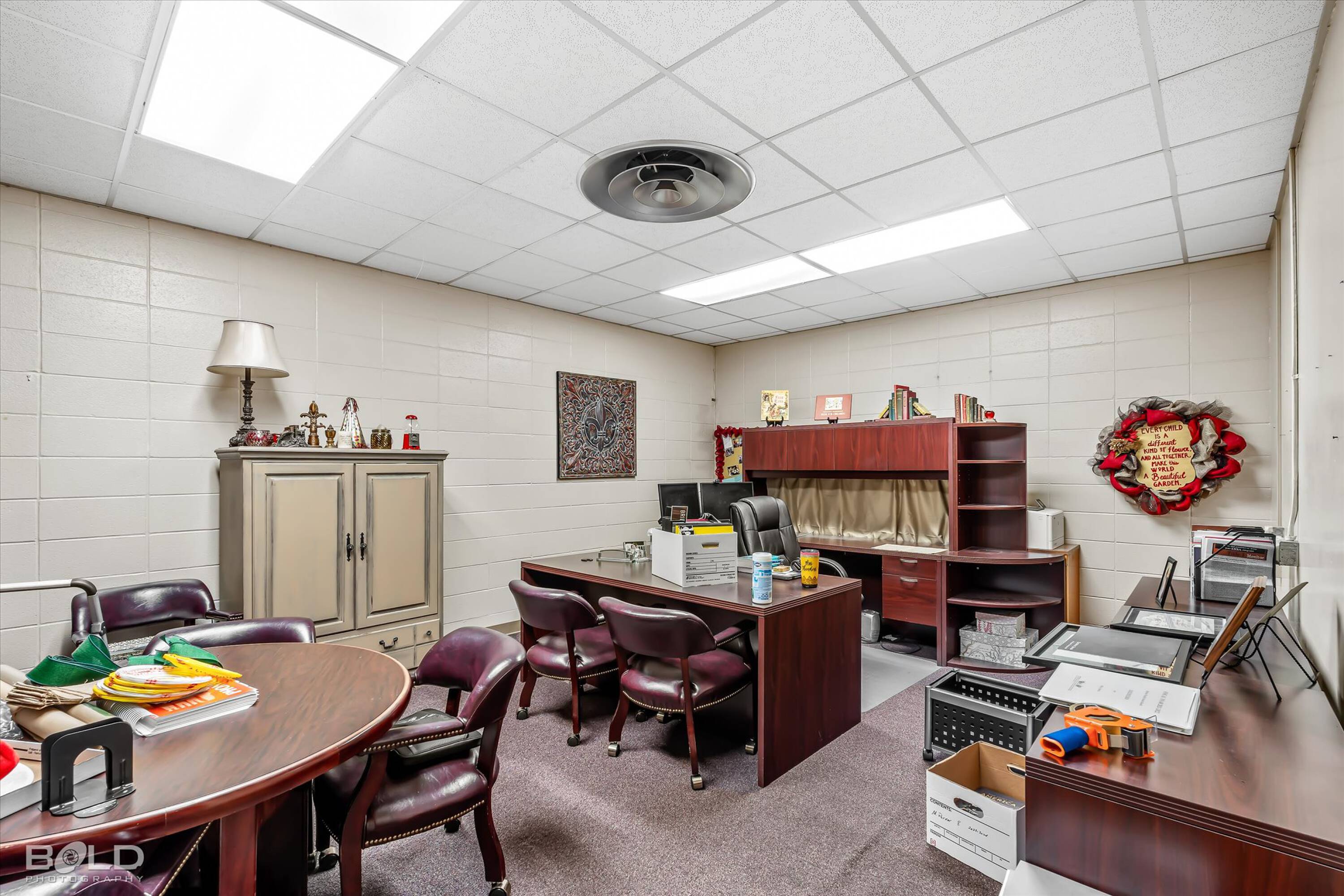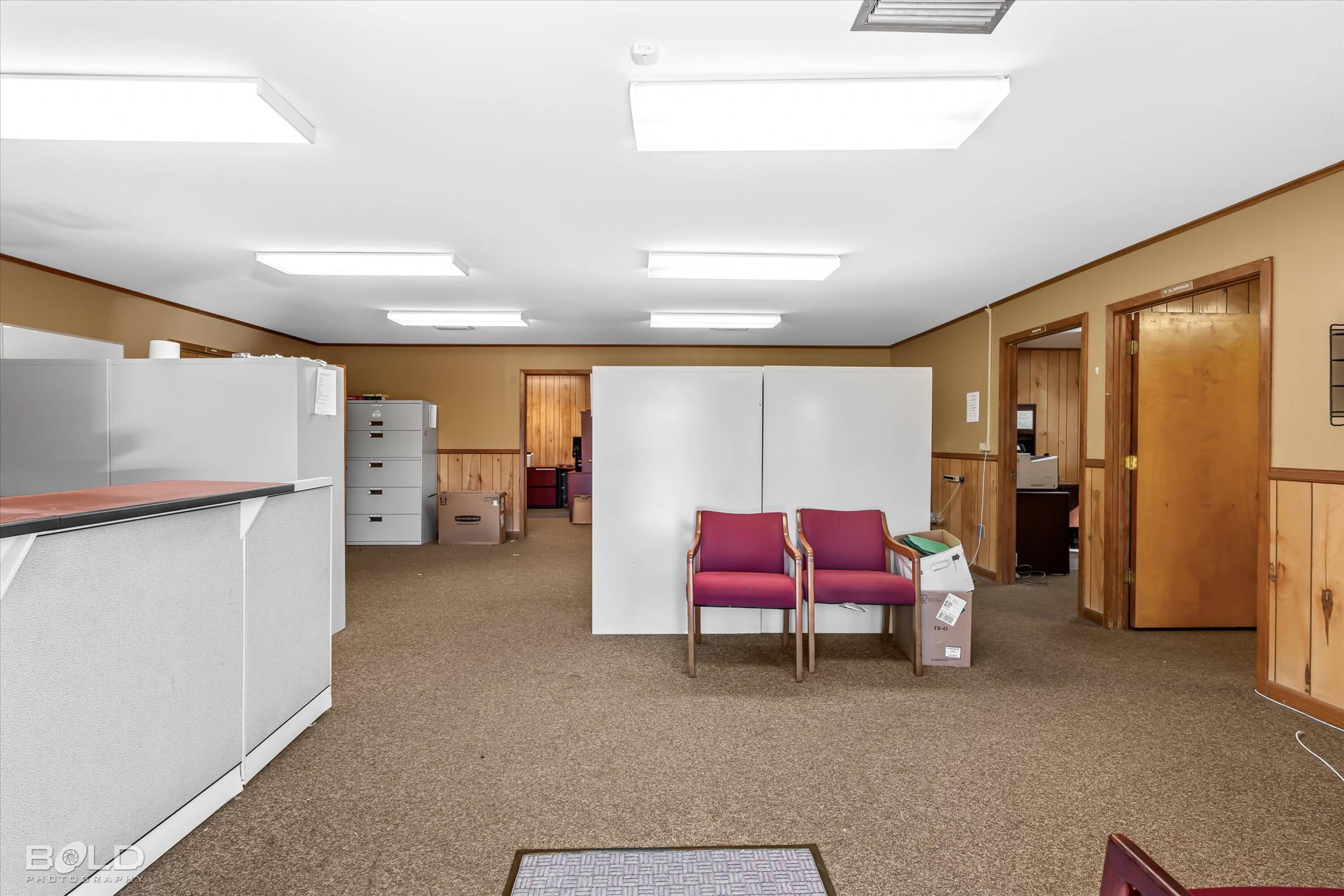 Adaptable commercial space with media center, warehouse, and special services.