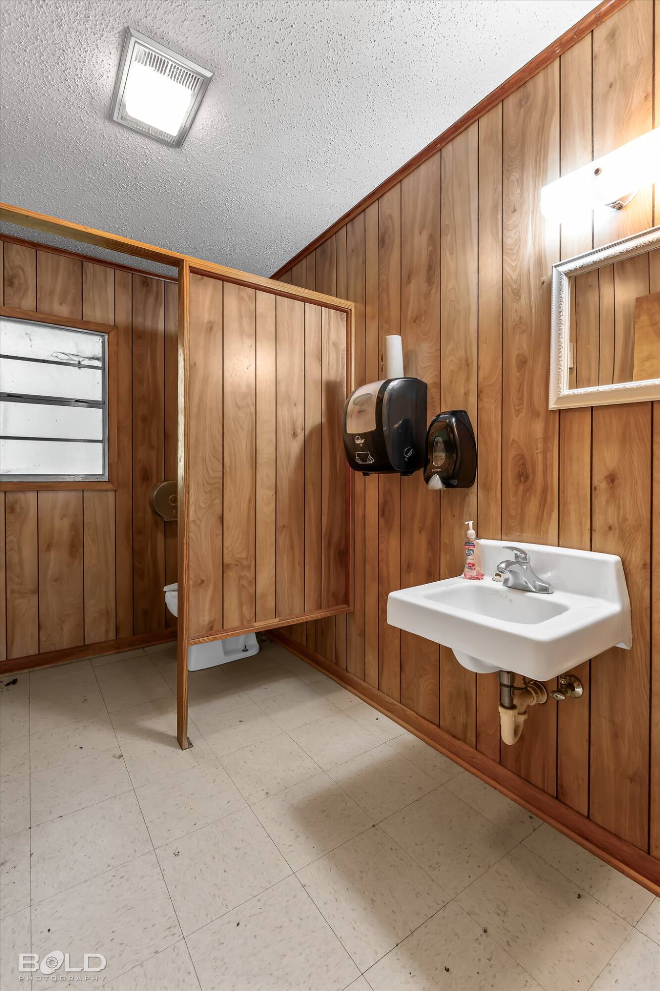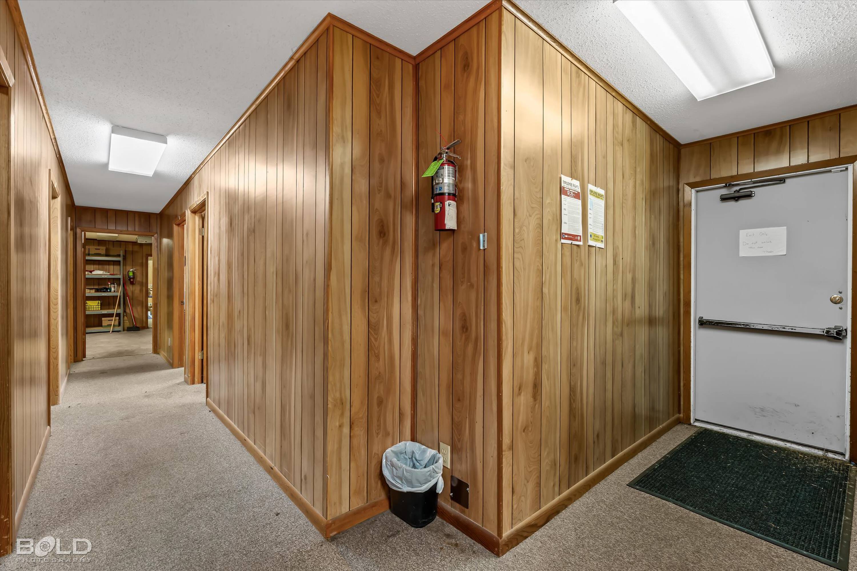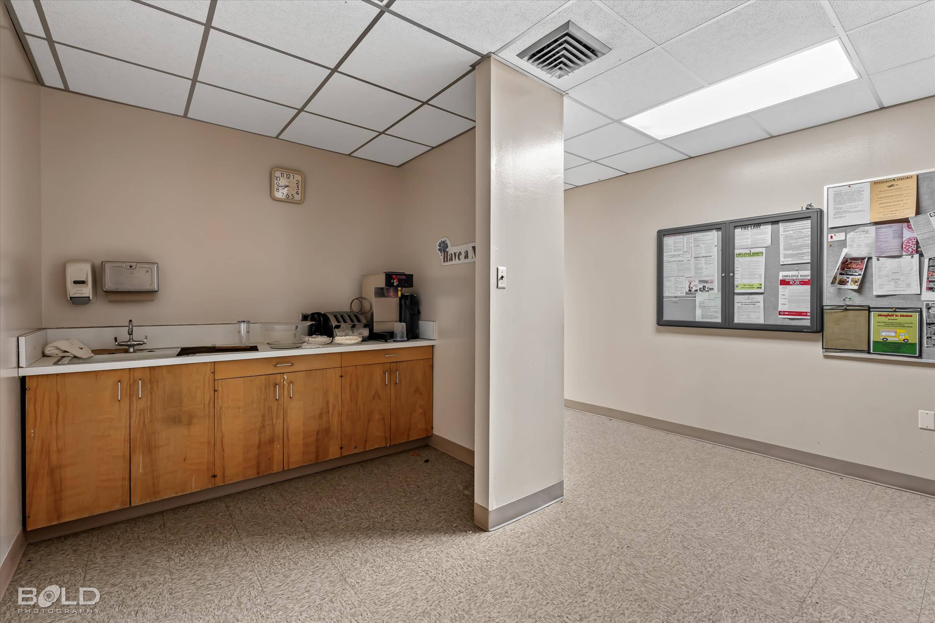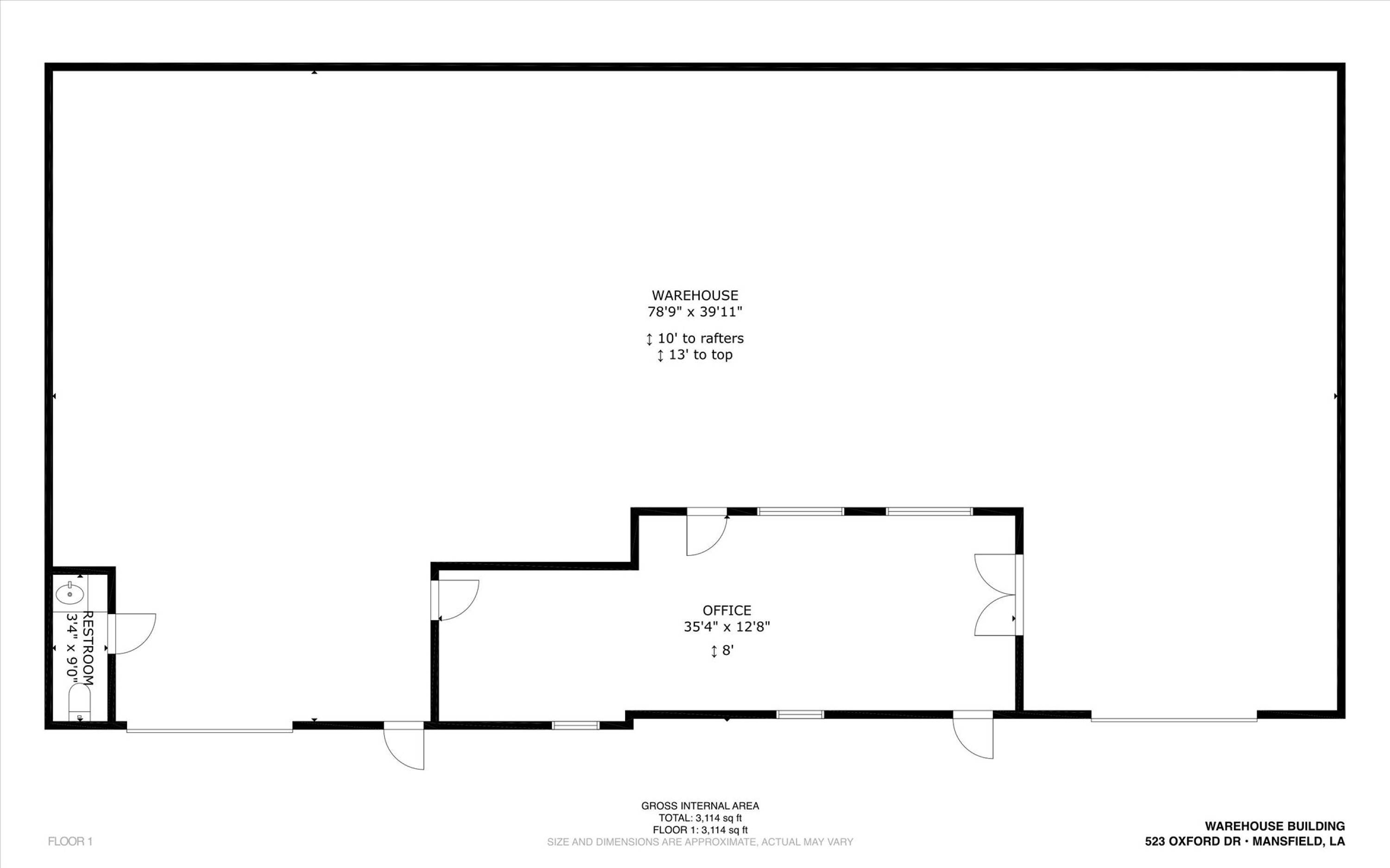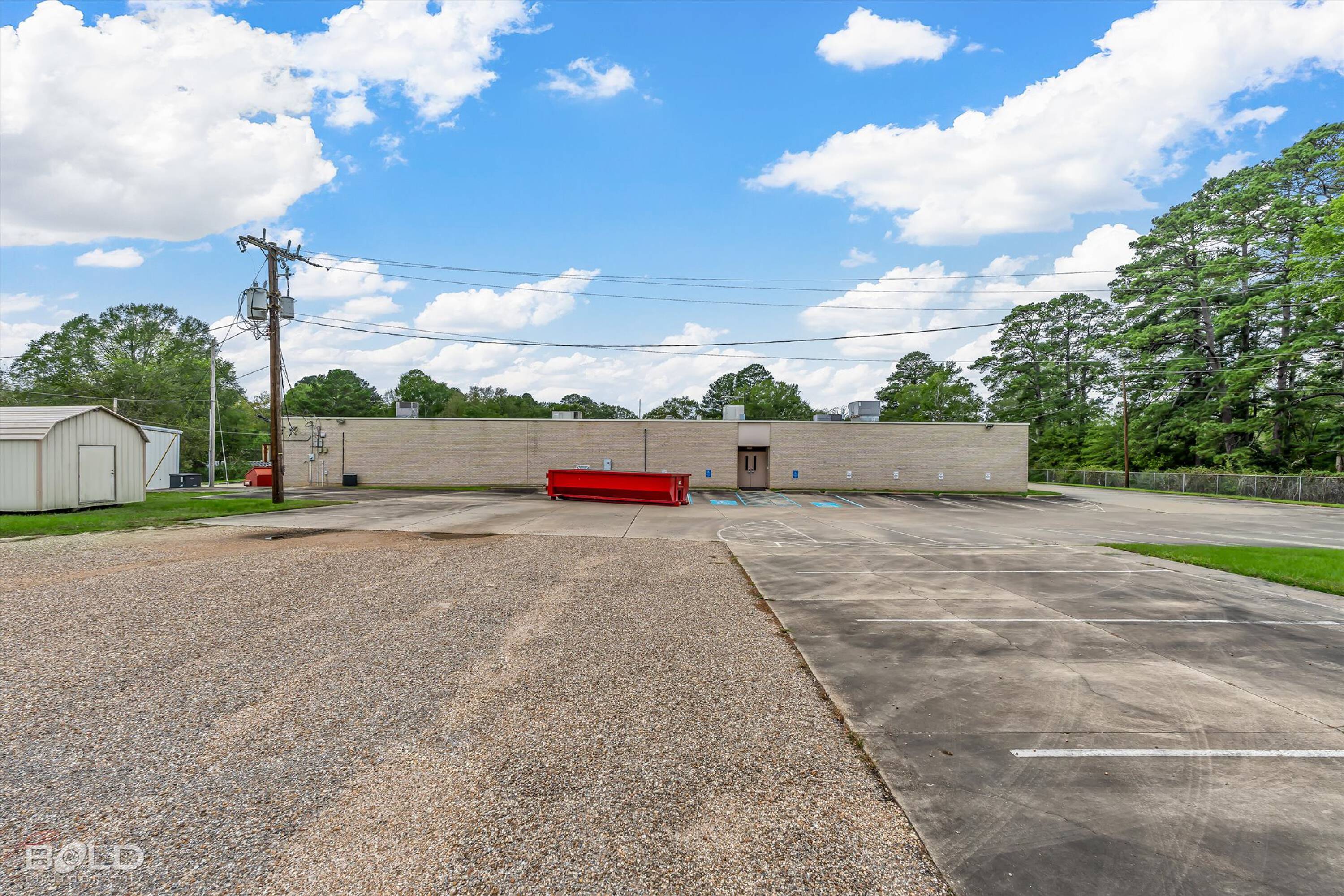 Adaptable commercial space with media center, warehouse, and special services.