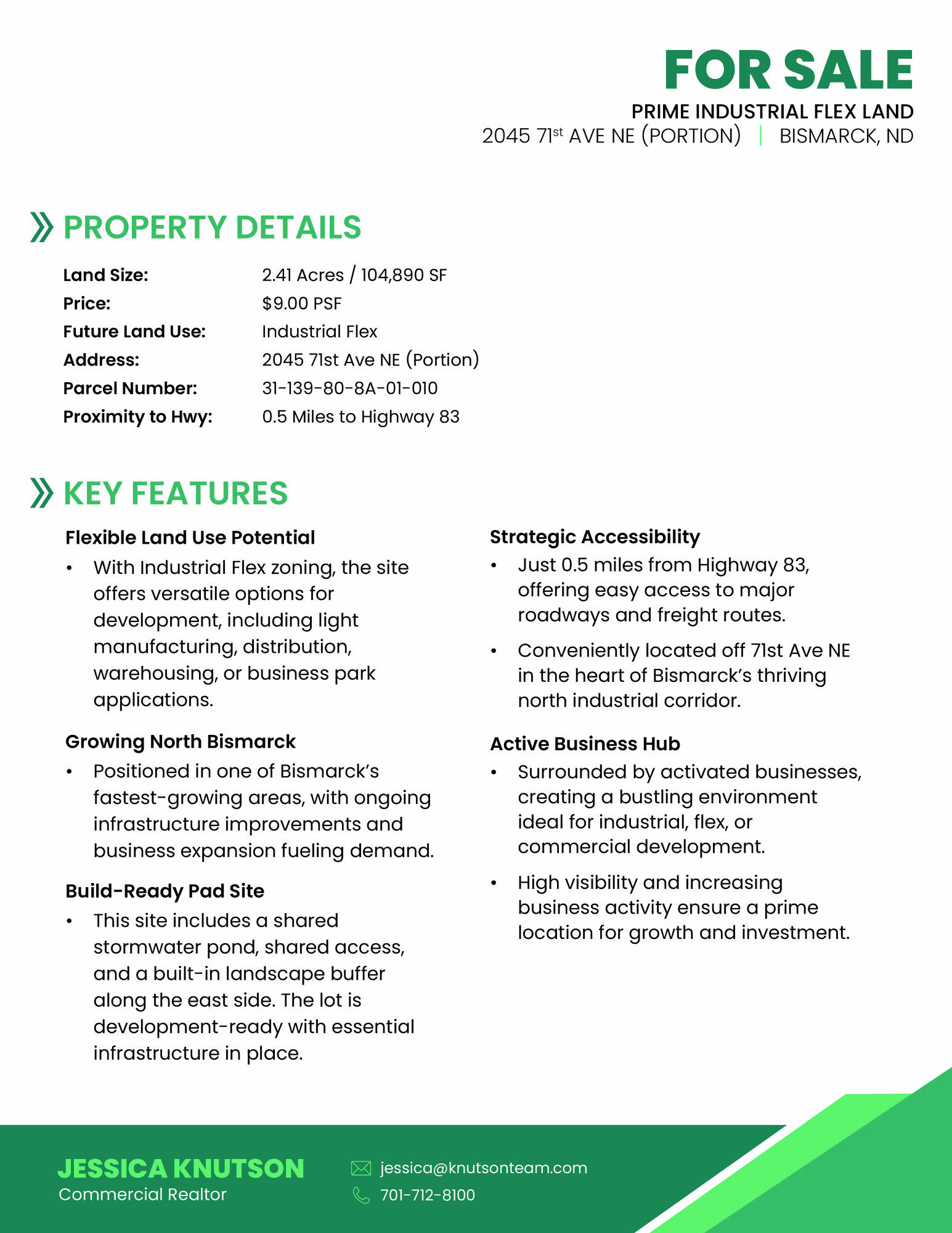 2.41-acre industrial flex parcel in Bismarck's north industrial corridor.