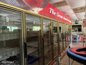 Commercial building with grill, coolers, game room, and parking.