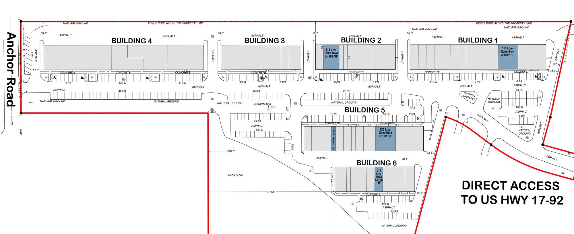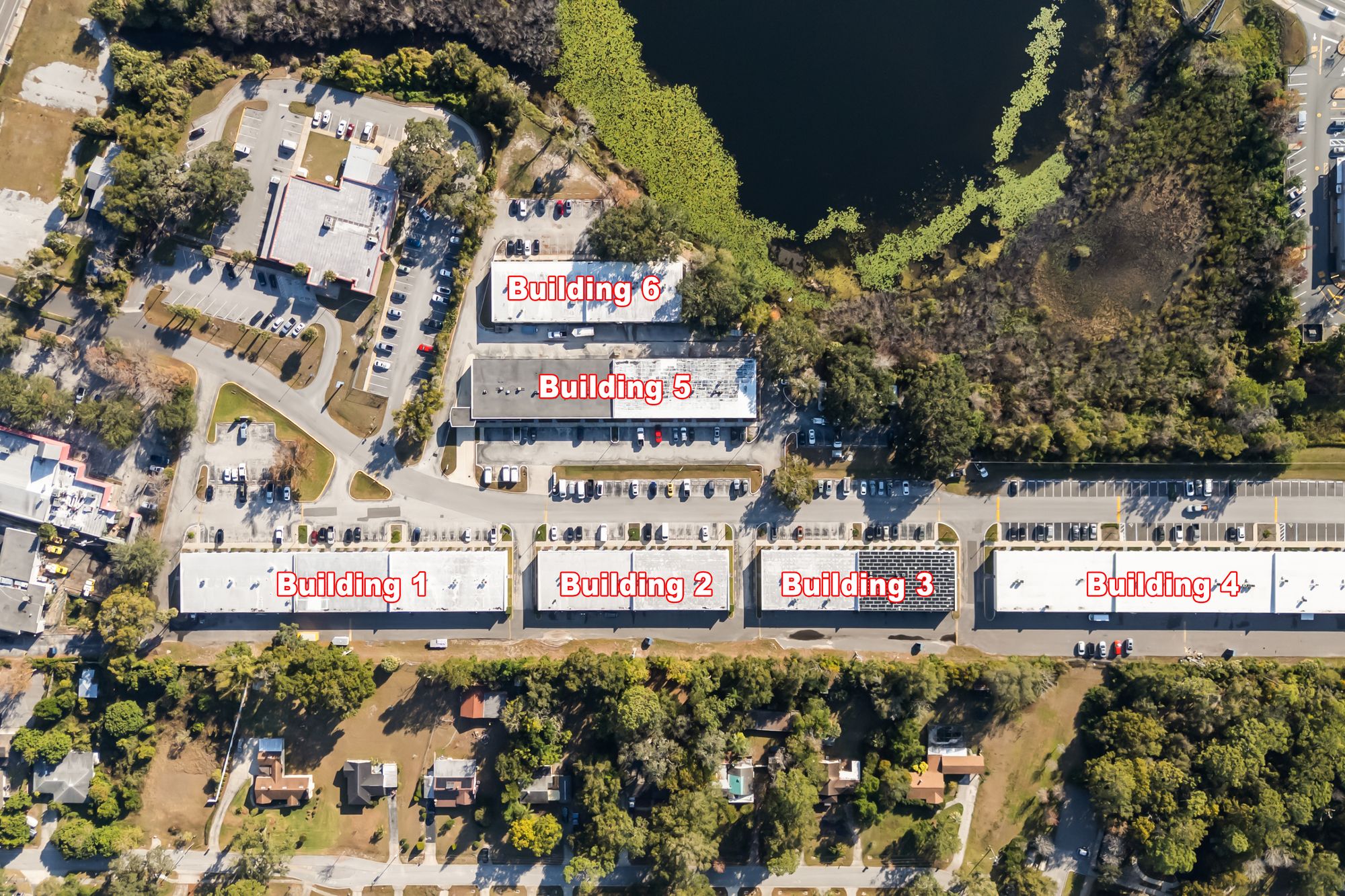 Flex park with office/warehouse configurations available for rent.