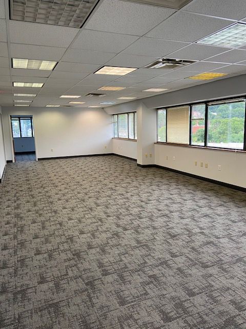 This office space is available for lease in Carnegie, Pennsylvania. The location in Downtown Carnegie provides accessibility to commercial banking institutions and local restaurants. It also offers convenient access to Interstate 376 and Interstate 79, situated 6 miles southwest of Downtown Pittsburgh and 13 miles southeast of Pittsburgh International Airport. Available spaces include 350 square feet and 1,800 square feet on the 4th floor, and 1,753 square feet on the 5th floor. The building features two elevators, restrooms on each floor, and on-site parking with 93 spaces. The lease rate includes utilities and cleaning services. A tenant improvement allowance is offered, subject to the lease term.