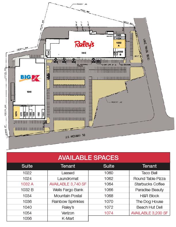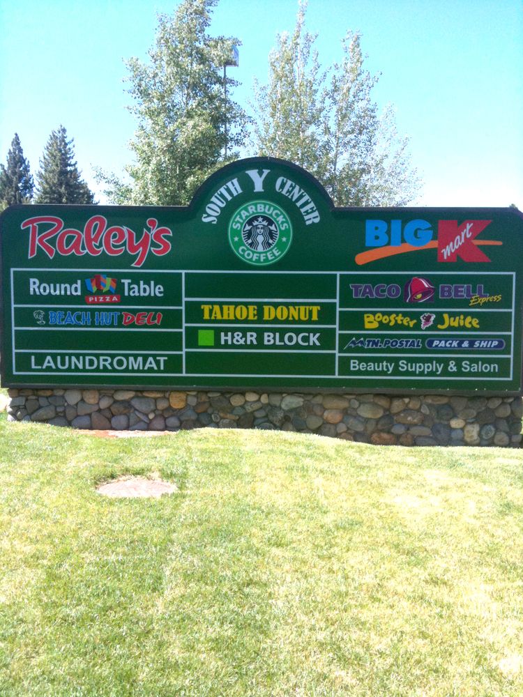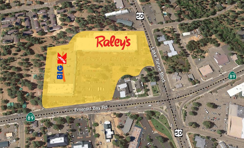 Anchored shopping center at high-traffic intersection in South Lake Tahoe.