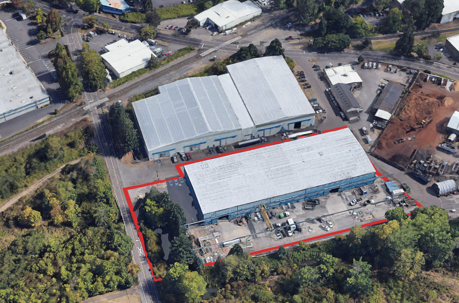 Two-story industrial building featuring crane bays and drive-thru capability.